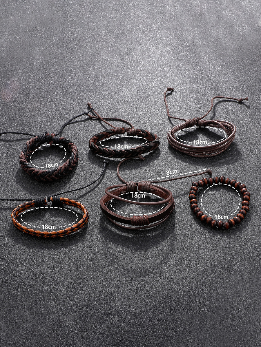 Bracciale intrecciato in poliuretano PU da uomo alla moda e popolare 6 pezzi per regalo di gioielli e per look elegante