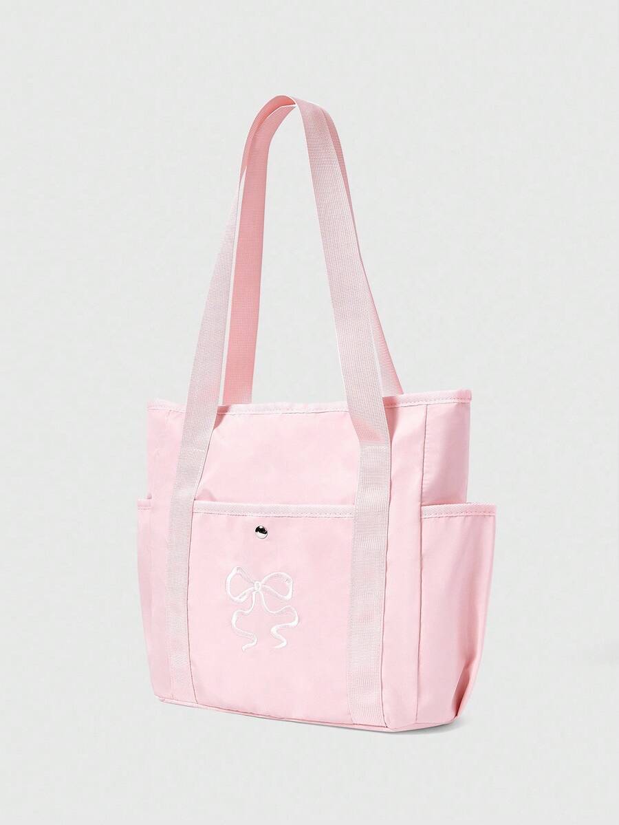 Kawaii Borsa a tracolla in nylon con ricamo a fiocco per donna, borsa impermeabile per pendolari, borsa con cerniera nera con ampia capacità, adatta per racchetta da badminton, ritorno a scuola