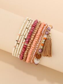 Bracciale con nappe con perle di vetro da 9 pezzi