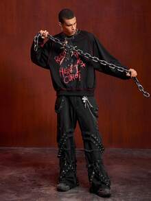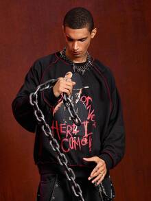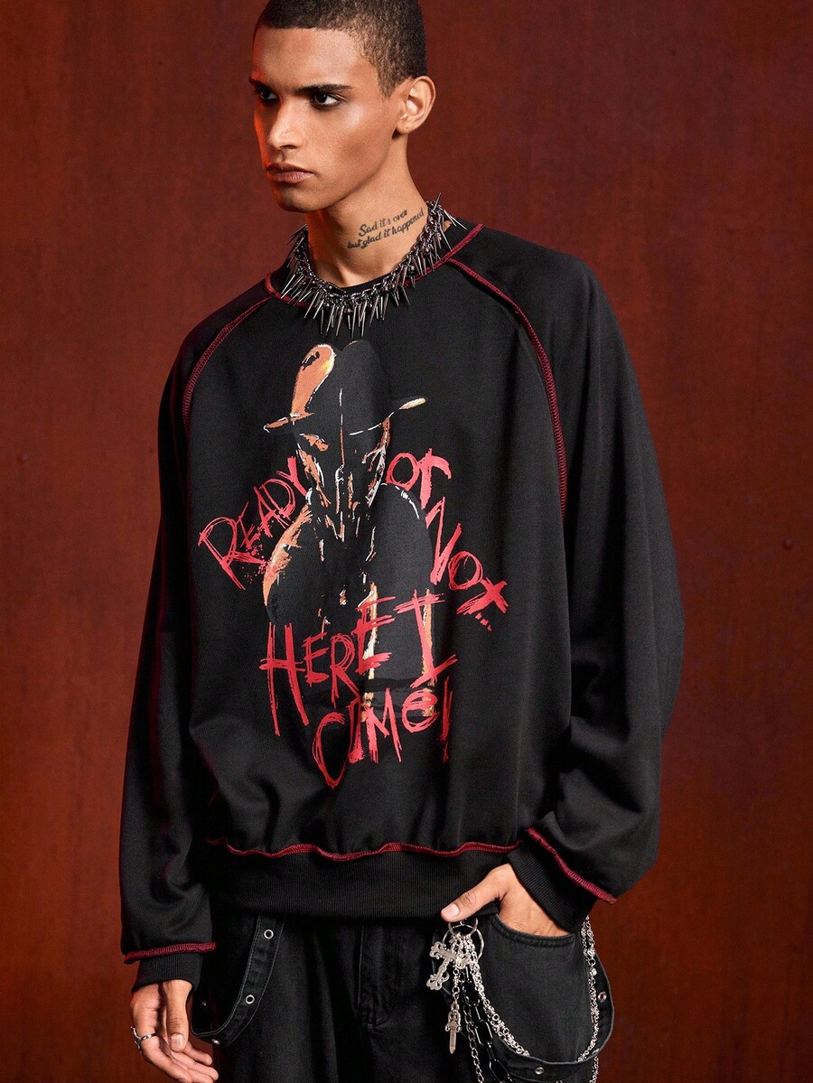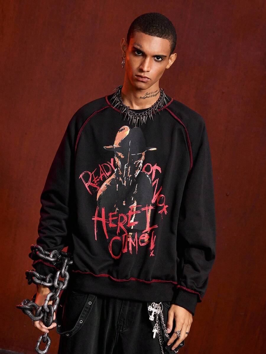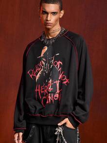 A Nightmare on Elm Street X ROMWE Felpa girocollo casual da uomo con grafica di lettere e numeri, autunno
