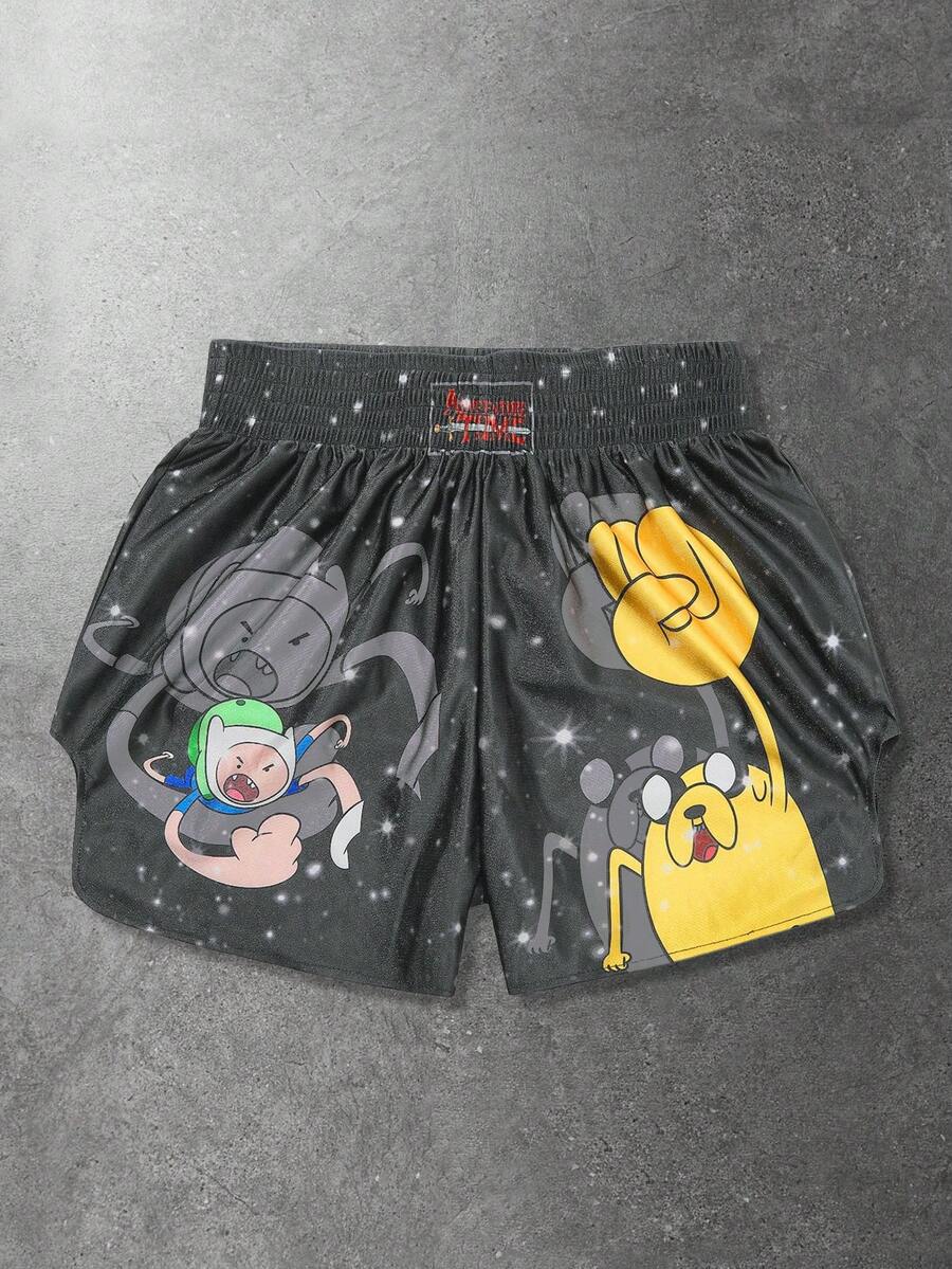Adventure Time X ROMWE Pantaloncini da boxe casual da uomo con motivo a cartoni animati, vita elastica, estivi