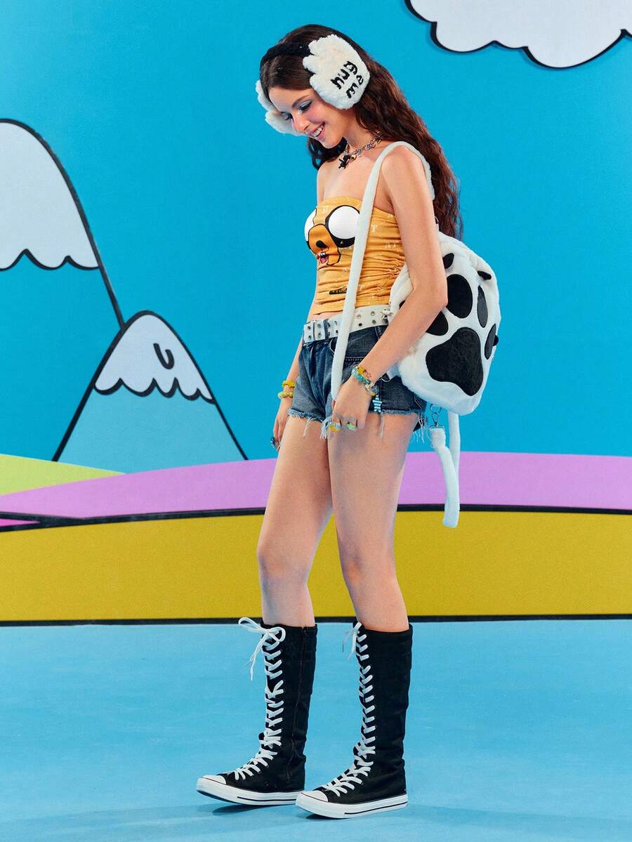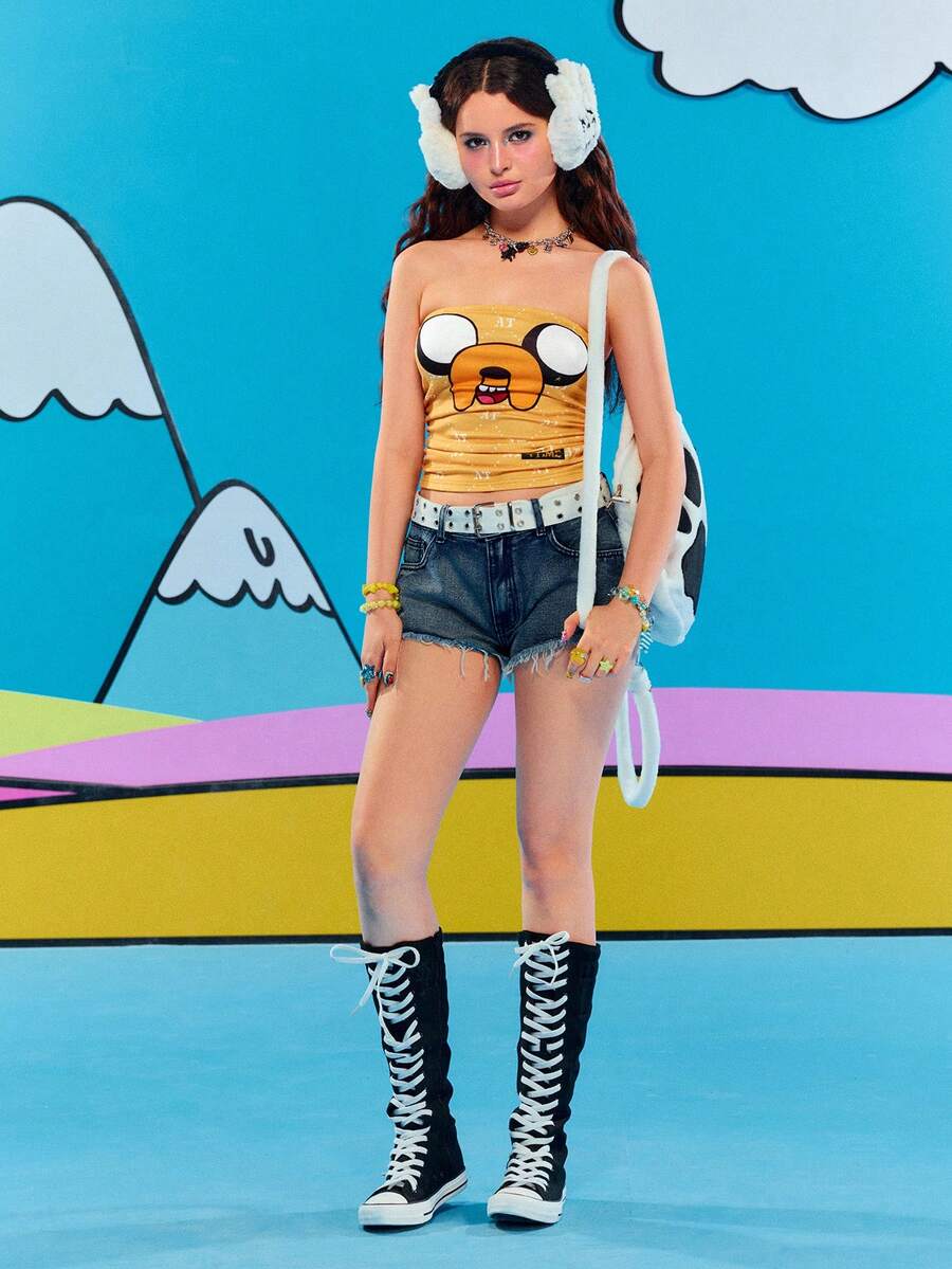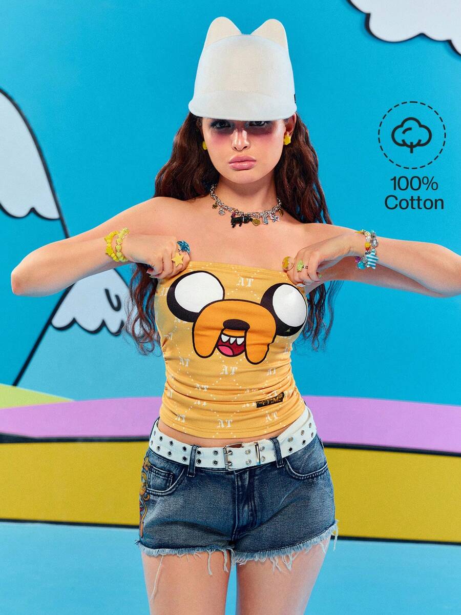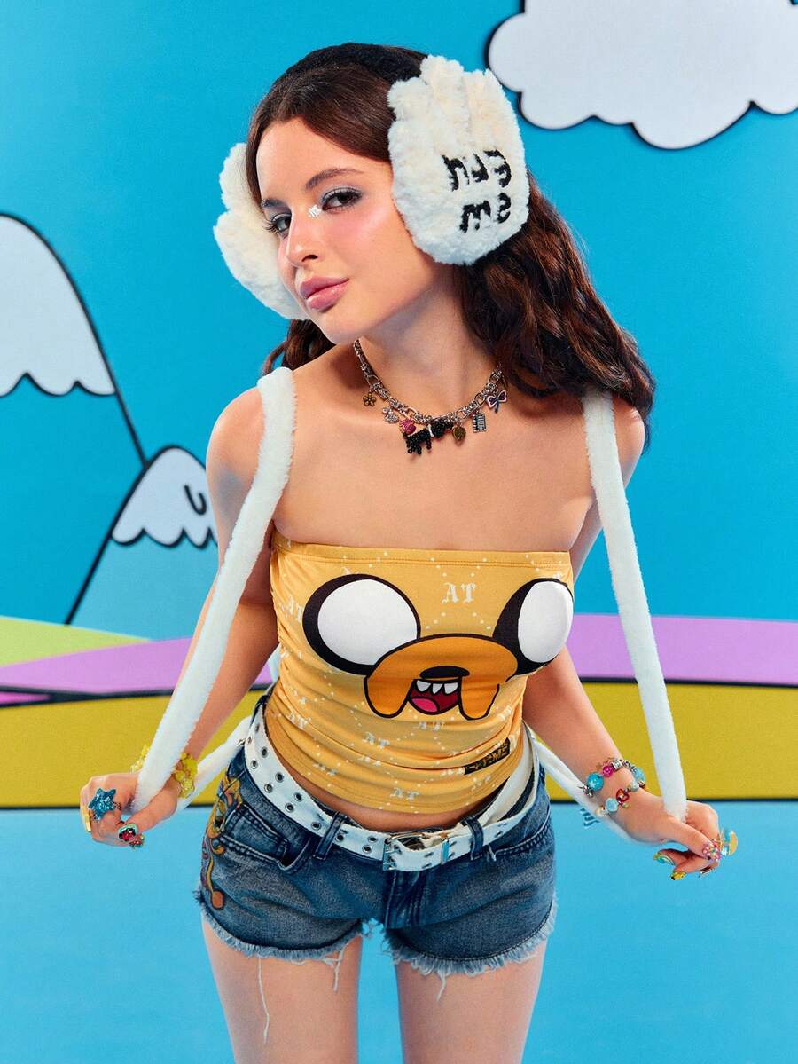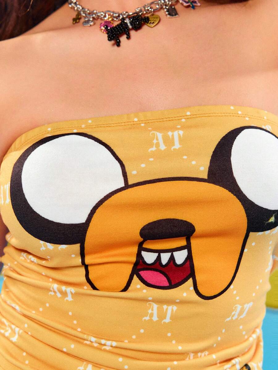 Adventure Time X ROMWE Top a fascia con arricciatura, decorato con grafiche di cartoni animati e lettere, per donna