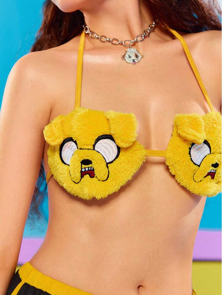 Adventure Time X ROMWE Top corto con spalline stile Y2K, ricamato con cani carini, adatto per l'estate