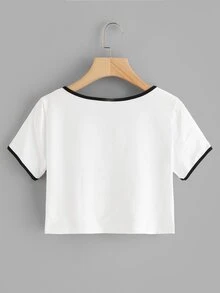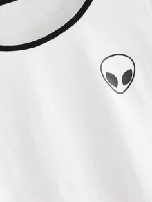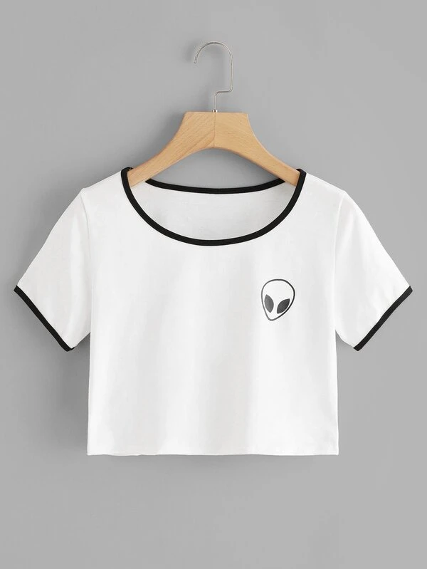 Alien Print Contrast Trim Crop Tee