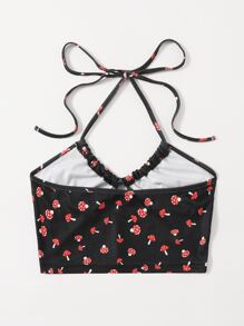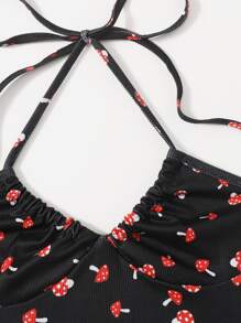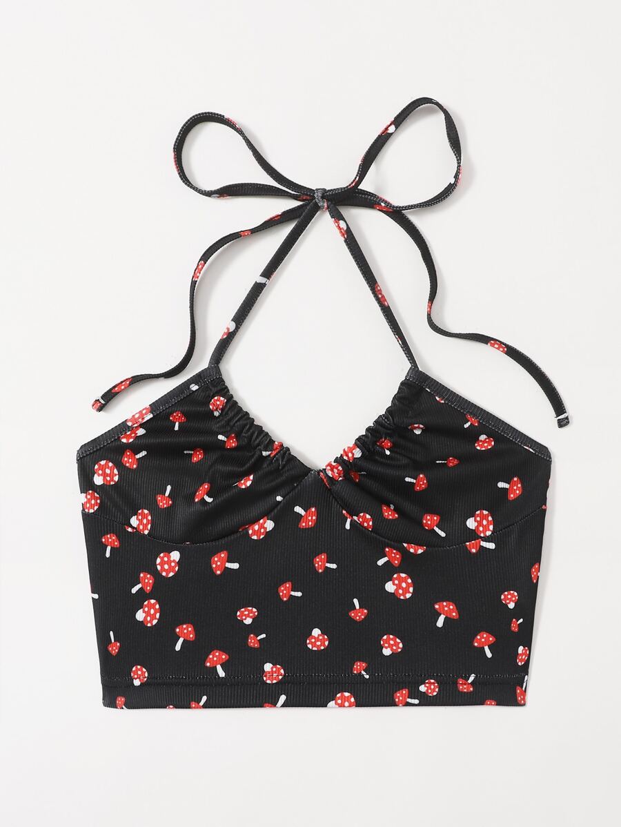 Top halter tutto con stampa funghi con schiena scoperta