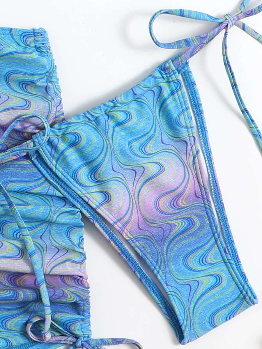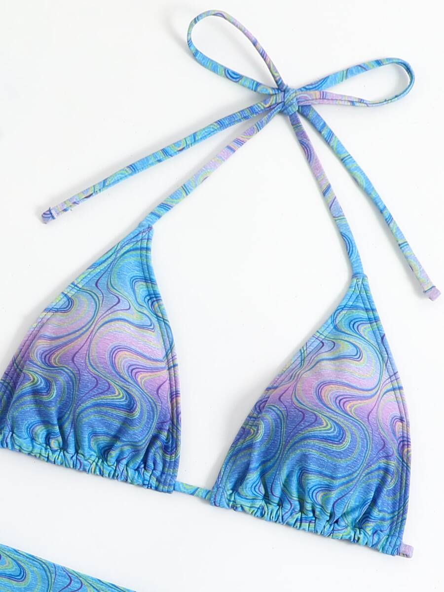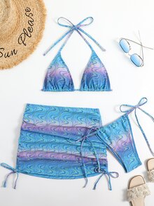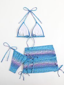 Set Bikini da Spiaggia Estivo con Stampa Halter Triangolo e Gonna da Spiaggia