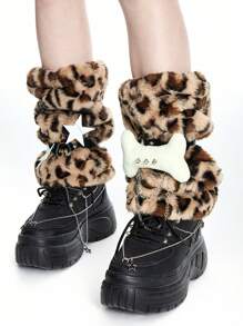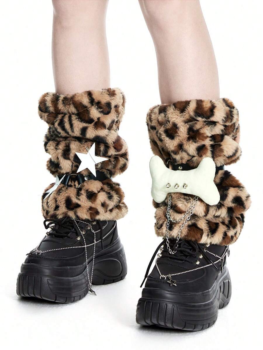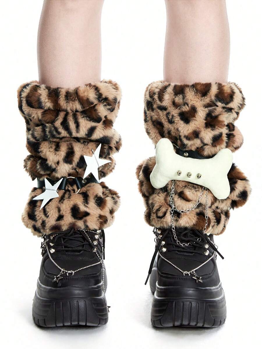 Anime 1 Paio di Calzini Leopardati Carini, Manicotti per Gambe Disegno Solido per Donne, Calzini Stile Giapponese Y2K Personalizzati con Ornamenti di Ossa e Stelle a Cinque Punte, Necessita di Installazione Autonoma