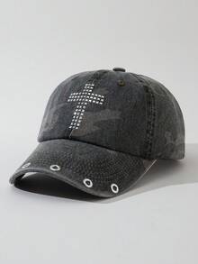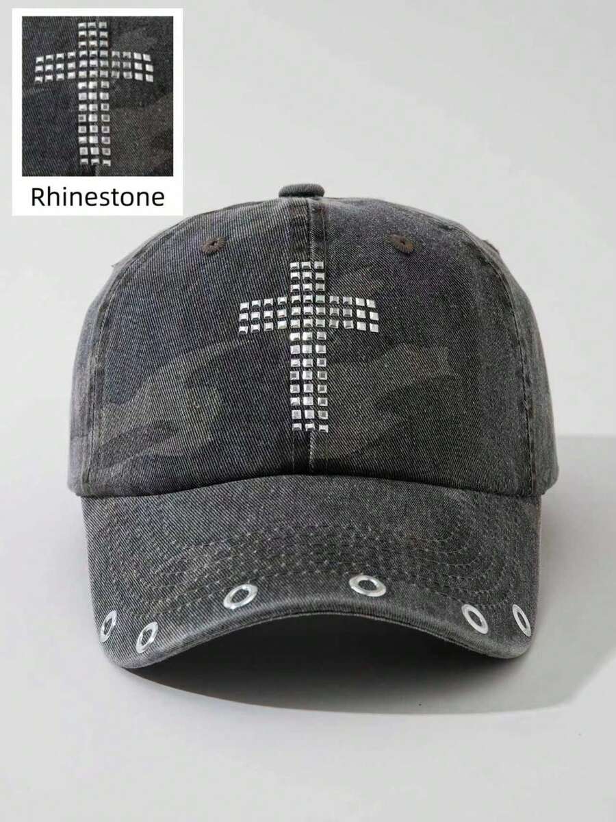 Anime 1 Cappellino da baseball regolabile da donna con ricamo a croce, motivo mimetico e anello per gli occhi, adatto per uso all'aperto