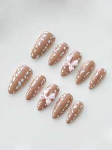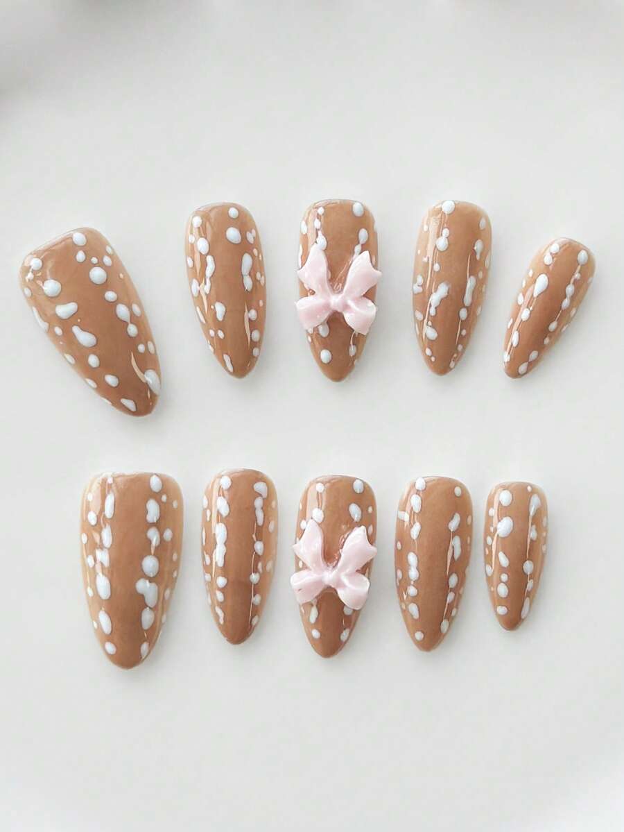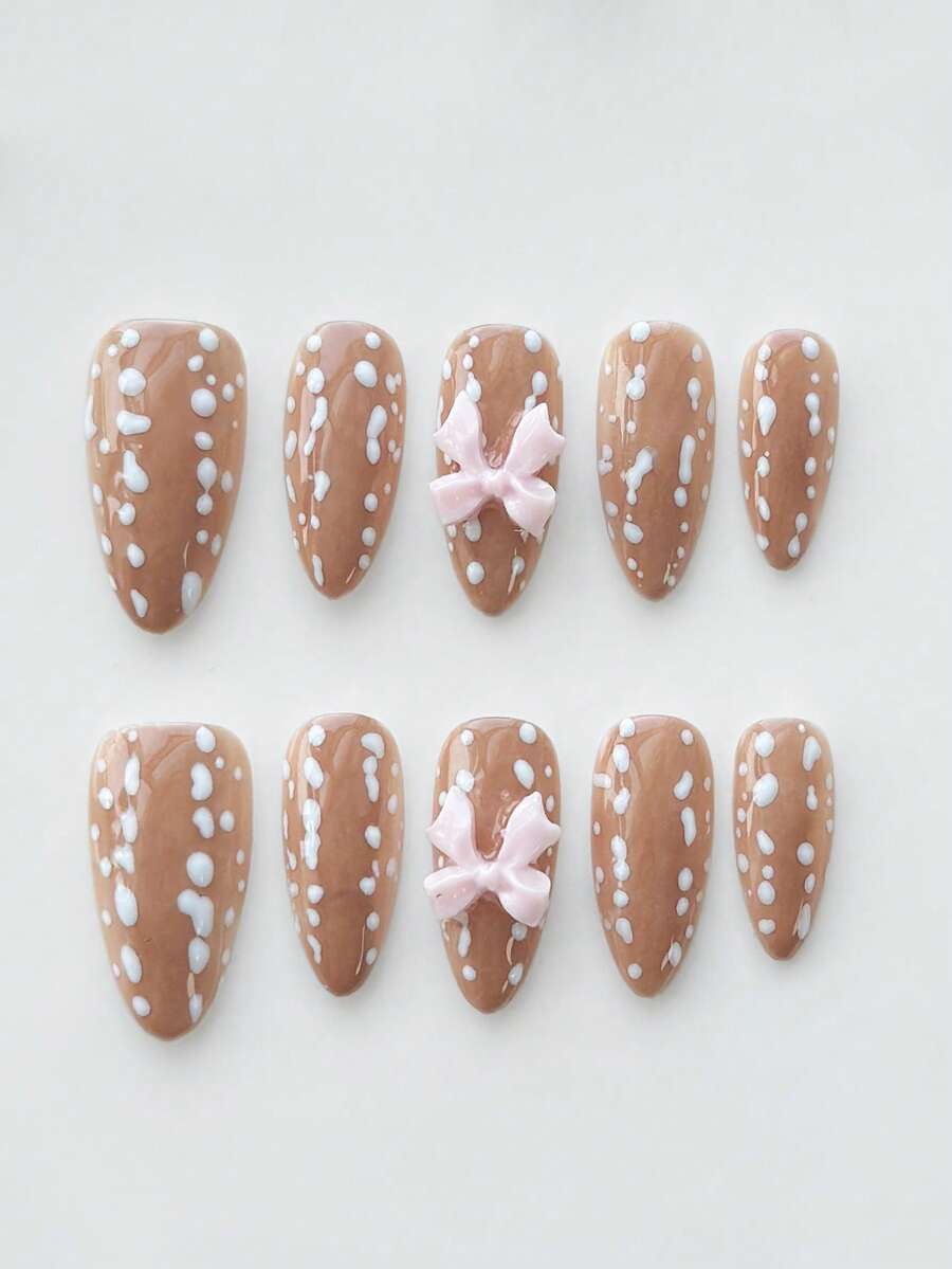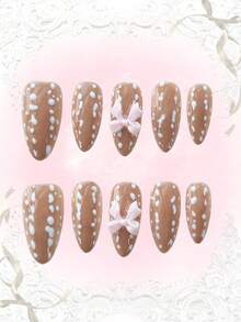 Anime 10 pezzi Unghie finte di alta qualità con fiocco carino, nota musicale, elemento a stella, realizzate a mano + 3 pezzi di adesivo biadesivo, Adesivi per arte di unghie rimovibili con catena di strass stile francese Y2K a pois, adatti per vacanze, feste, ballo e uso quotidiano
