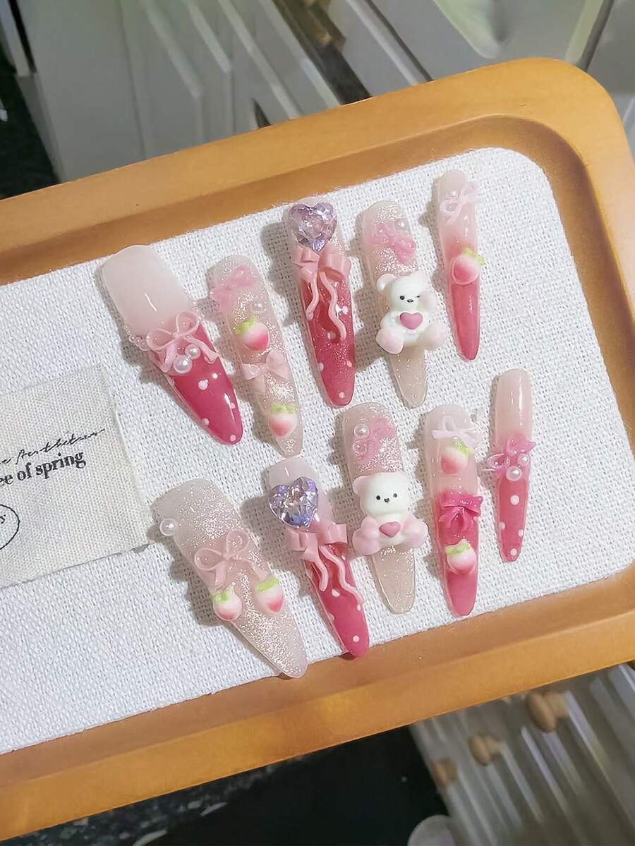 Anime 10 pezzi Adesivi per unghie Y2K carini a forma di cuore, stella, fiocco, ala con nastro