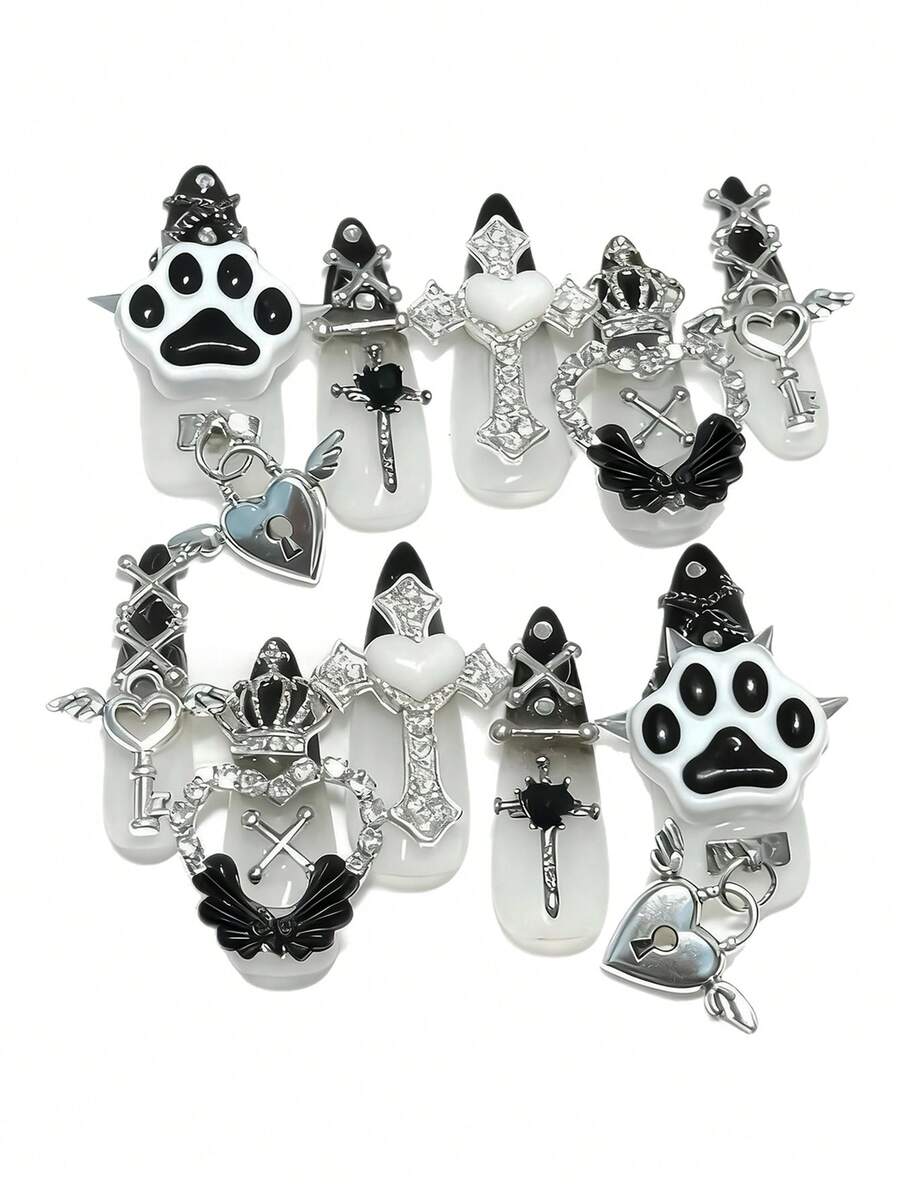 Anime 10 pezzi Adesivi per unghie Y2K carini a forma di cuore, stella, fiocco, ala con nastro