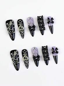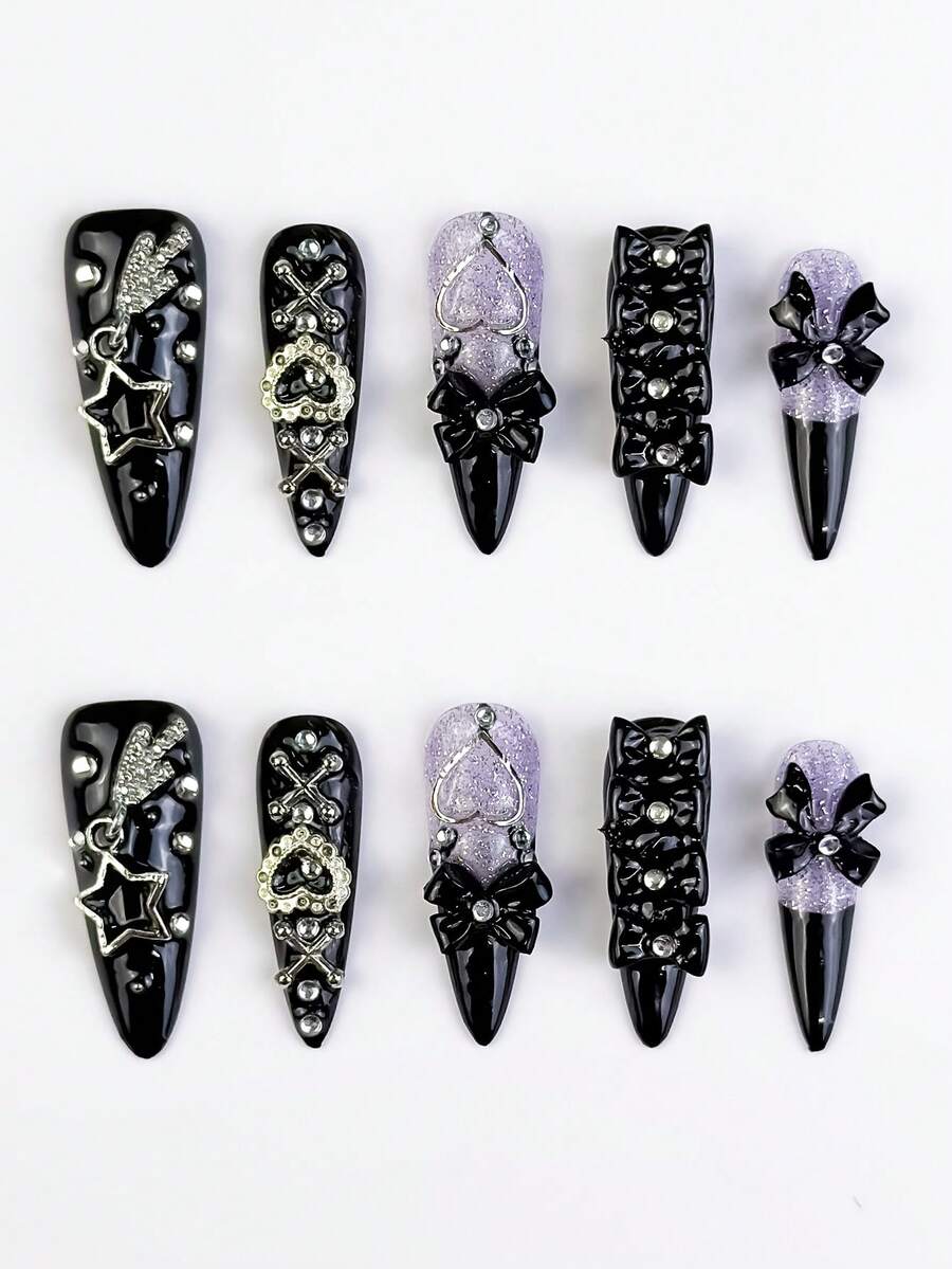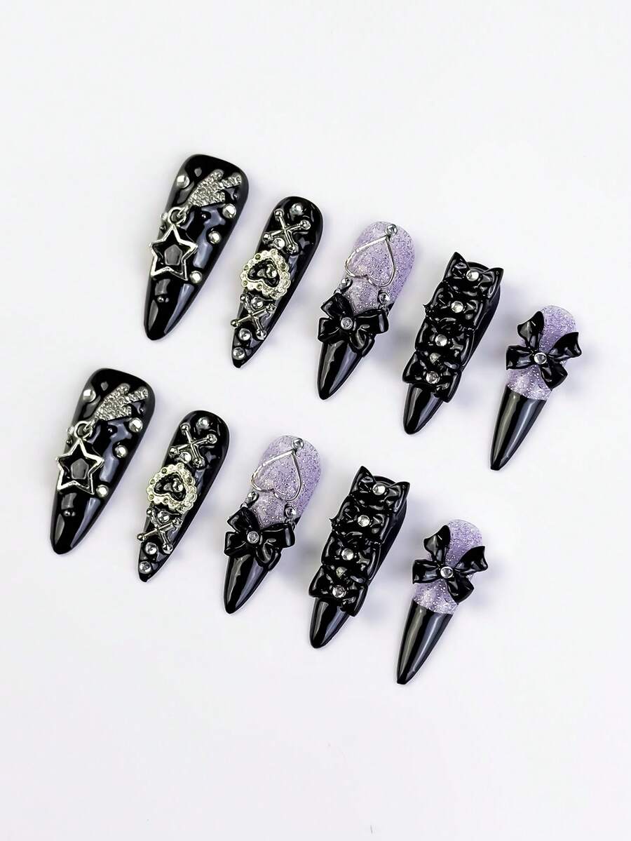 Anime 10 pezzi Adesivi per arte di unghie Y2K con cuori, stelle, fiocchi e ali, con nastro