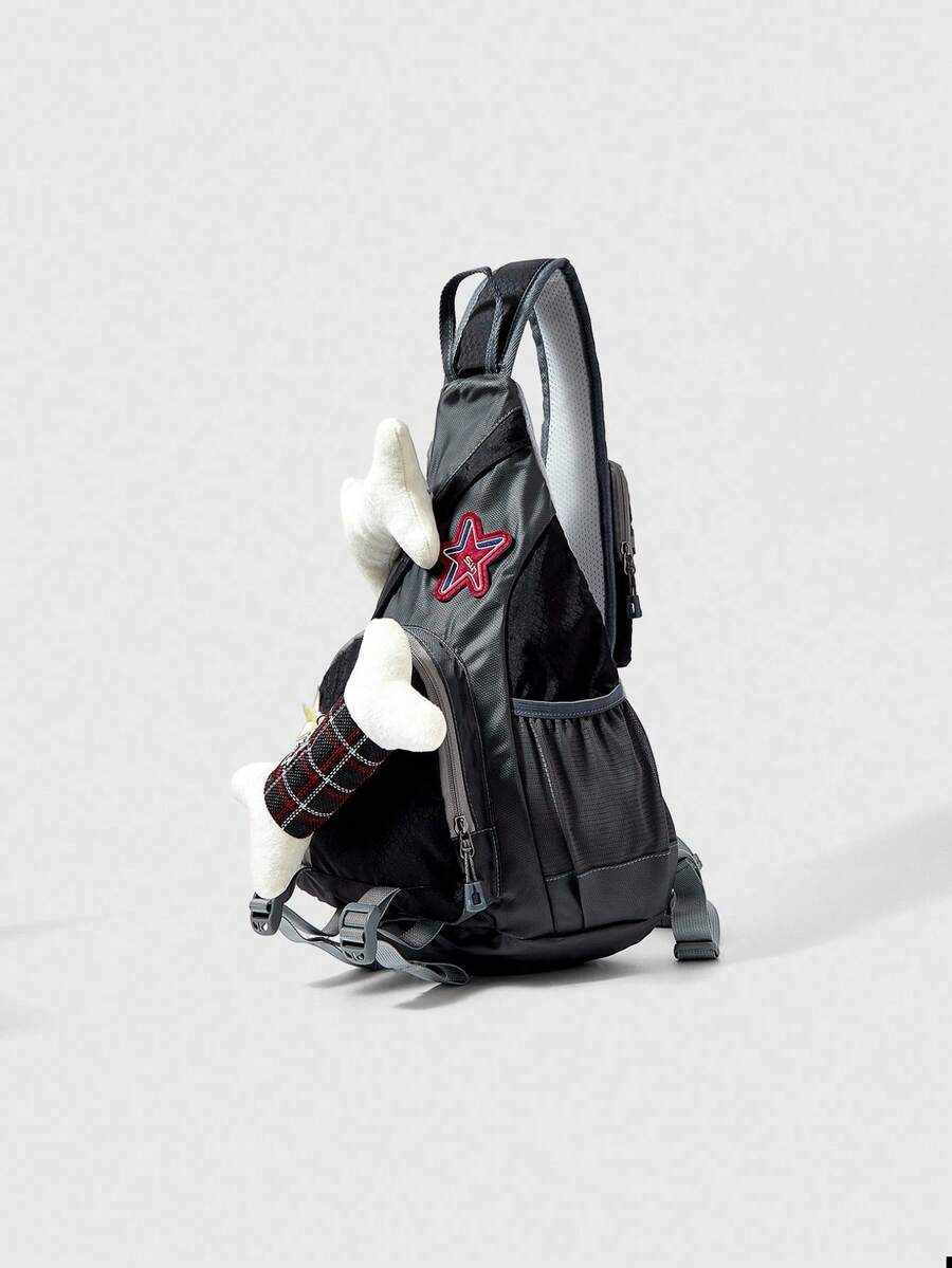 Anime 1 pezzo Marsupio stile punk Y2K nero, con stampa di stelle e ossa ricamata a quadretti, regolabile in vita, adatto per sport, shopping, pendolarismo