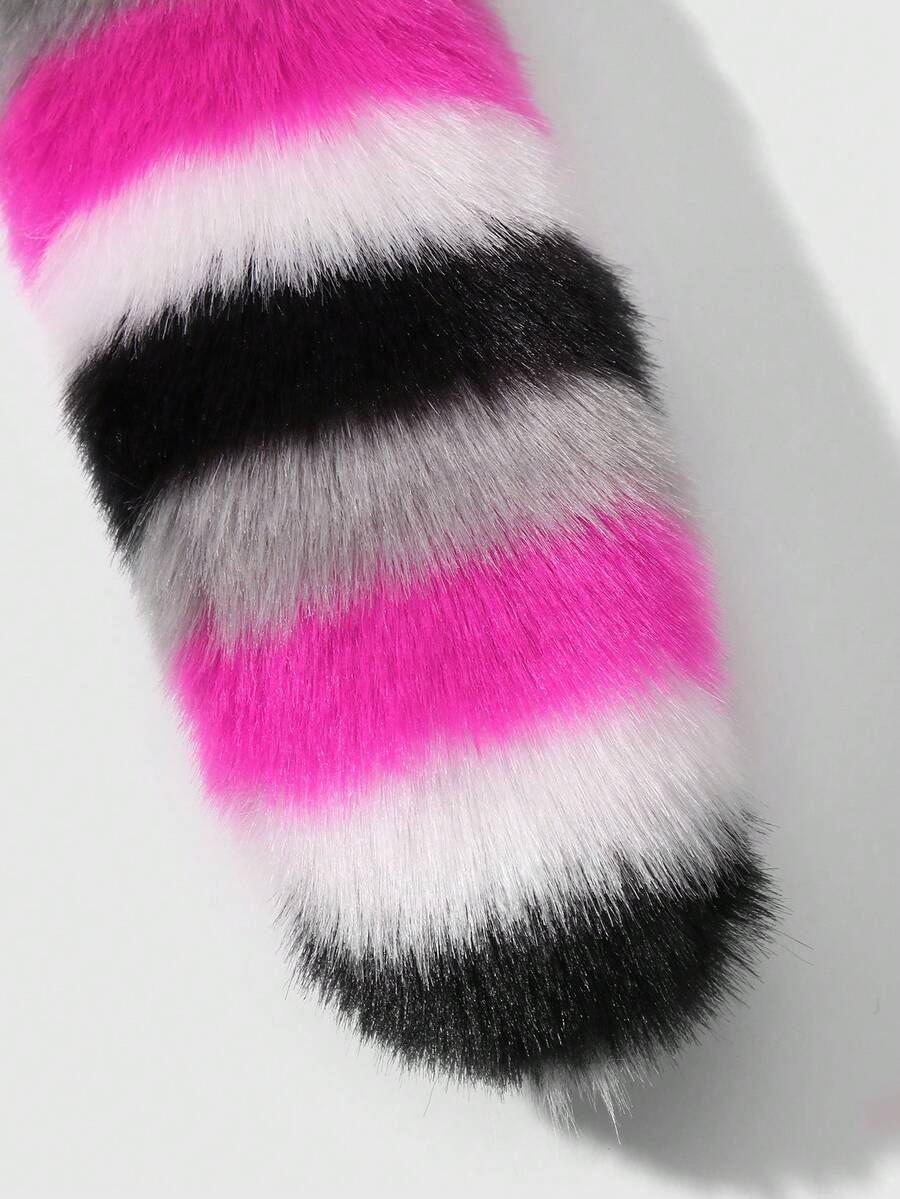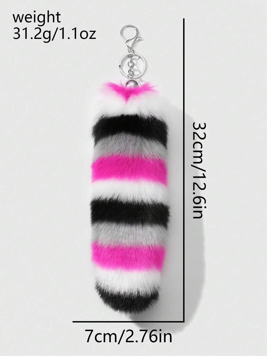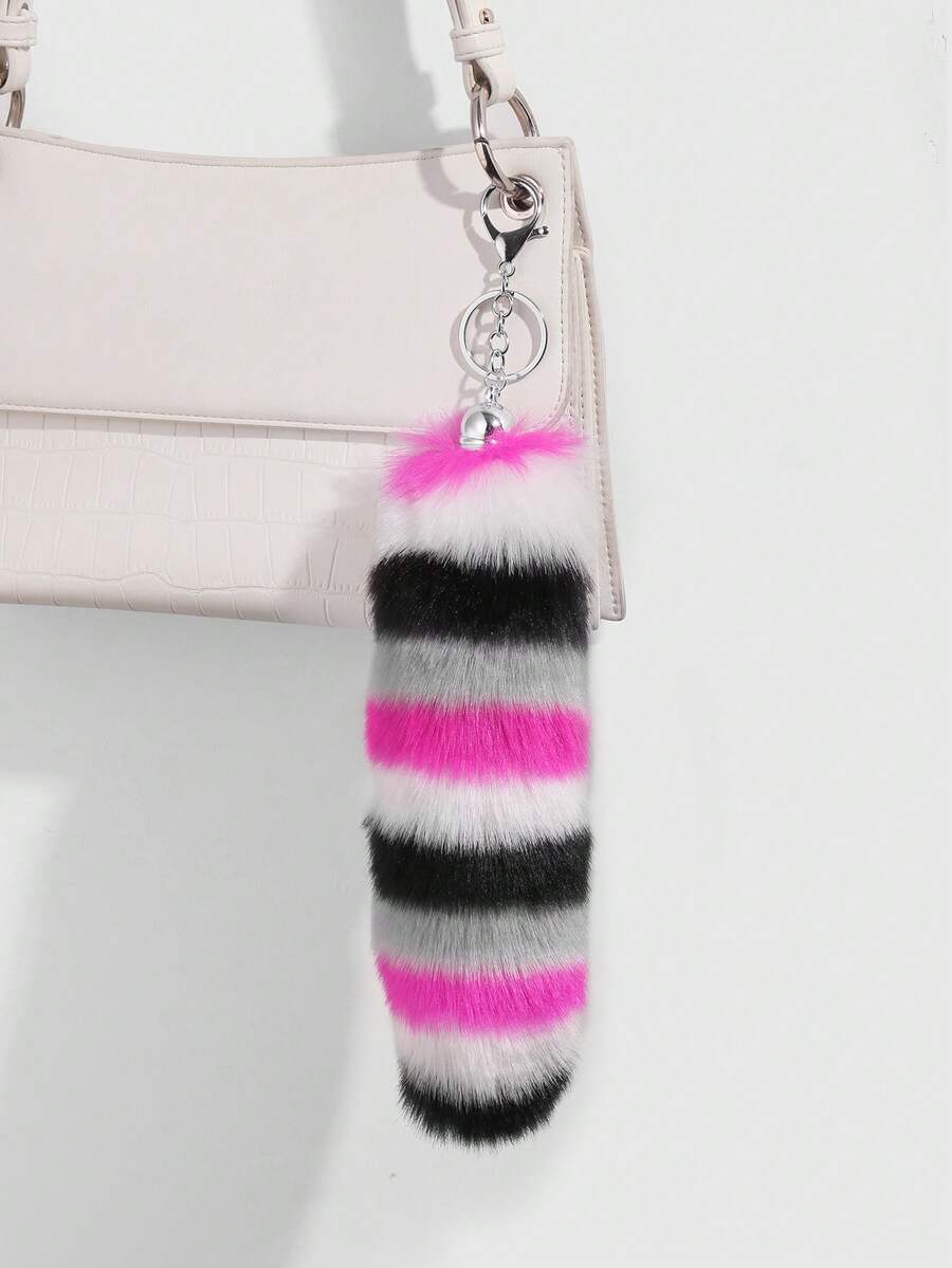 Anime 1 pezzo Portachiavi e ciondolo per borsa in stile Y2K, delicato e lussuoso, con coda di animale in pelliccia sintetica multicolore a righe, accessorio adatto per le donne, regalo per le vacanze