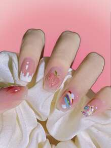 Anime 24 pezzi con stampa floreale Unghie finte & 1 foglio nastro