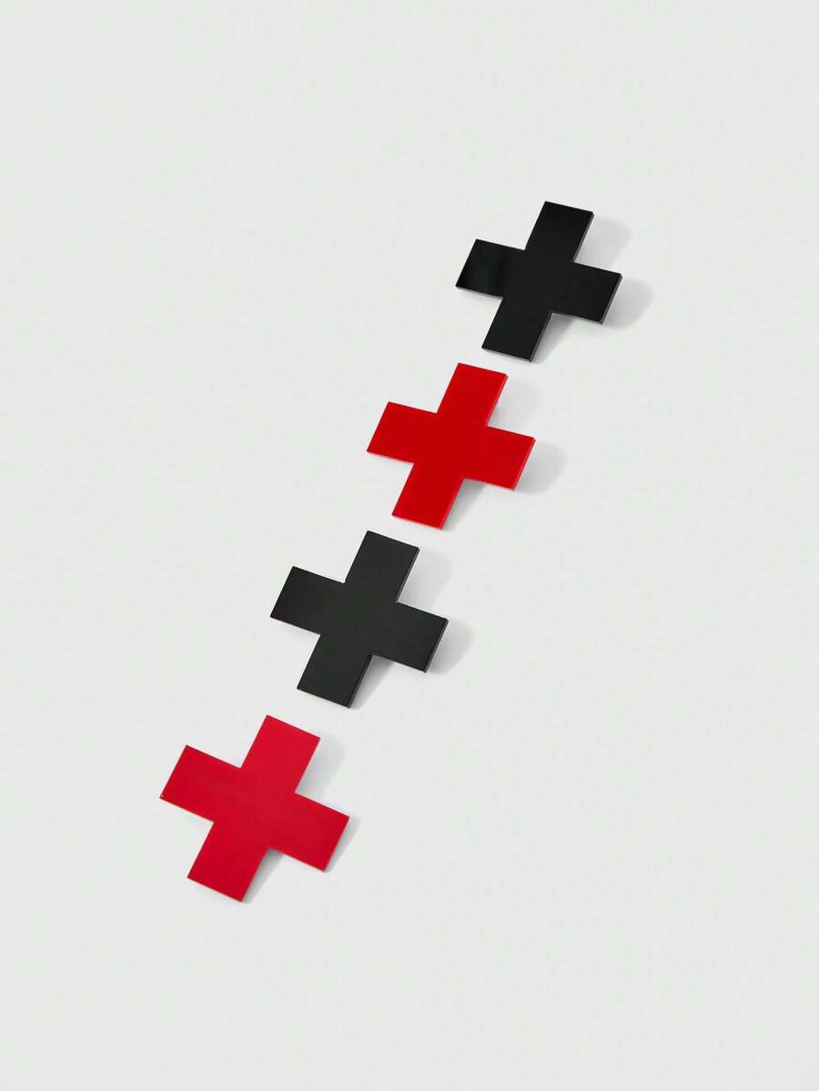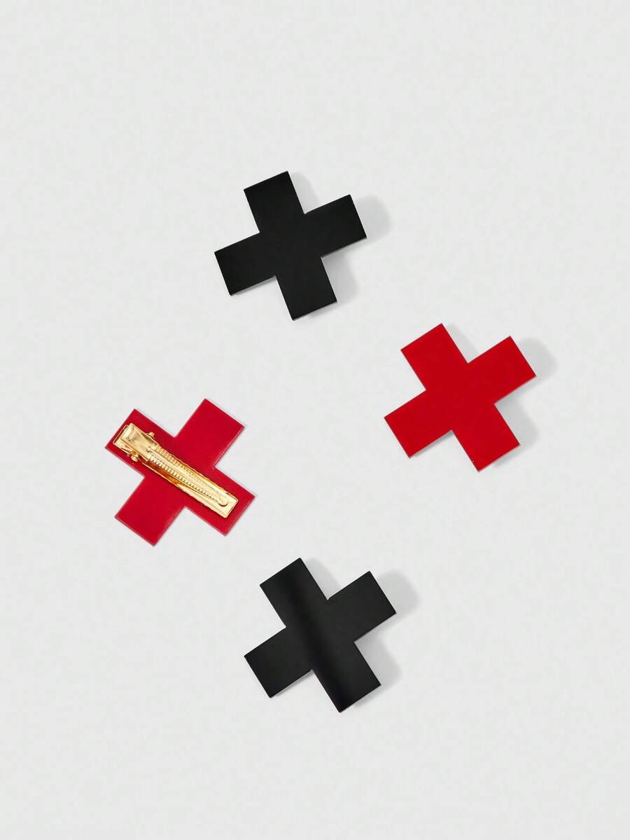 Anime 4 pezzi Fermagli per capelli a croce minimalisti a forma di punk, fermagli a goccia in acrilico rosso e nero stile baddie Y2K, accessori per i capelli di design di nicchia alla moda per l'uso quotidiano