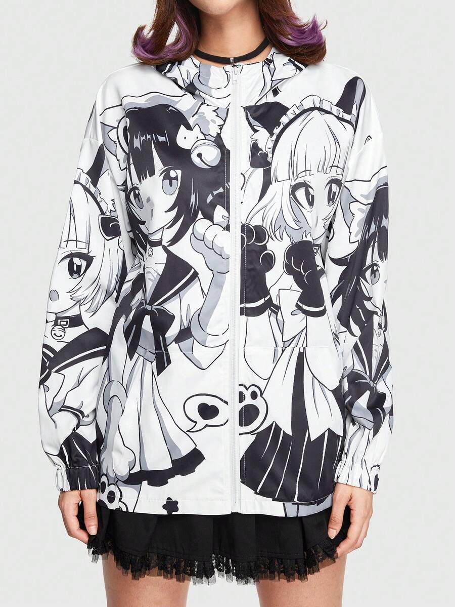 Giacca Con Cappuccio E Stampa All-over Di Anime