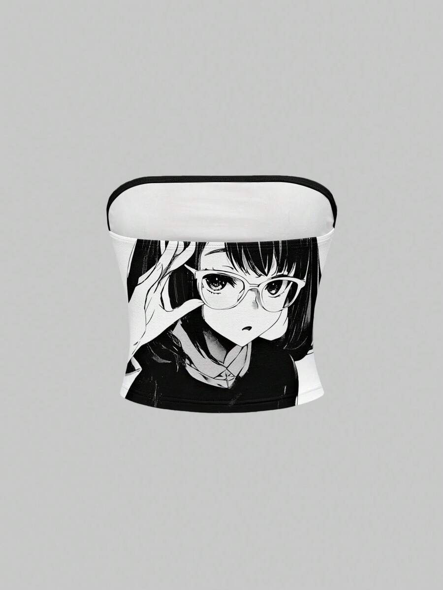 Blusa bianca crop top vintage sexy con personaggio di anime cartoni animati in stile Y2K per donna