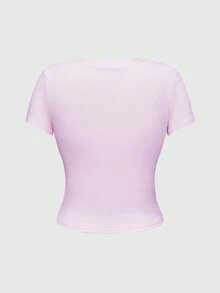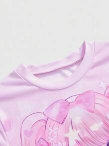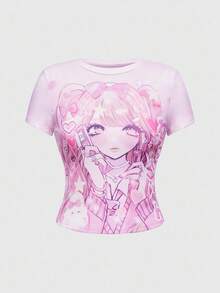 Anime Maglietta aderente a maniche corte con scollo rotondo e stampa di ragazza cartoni animati carina per donne