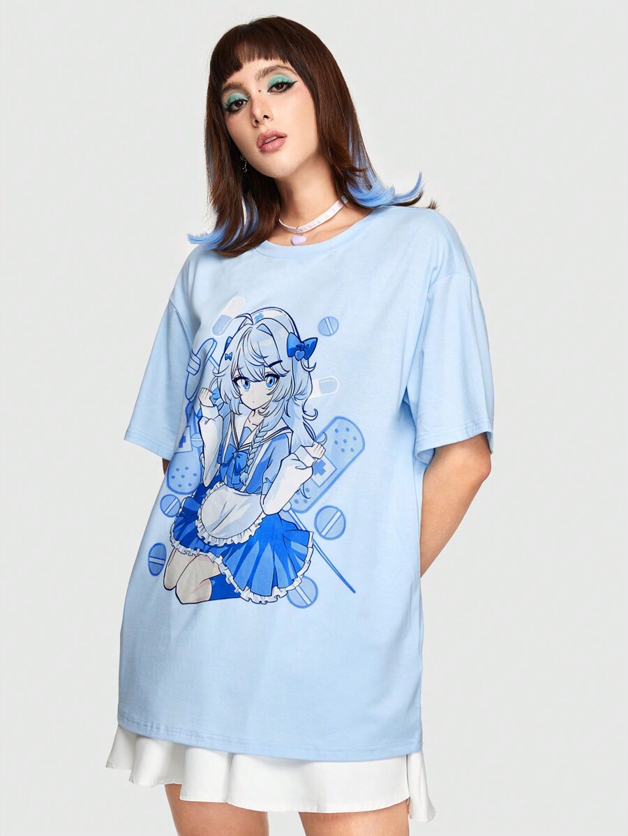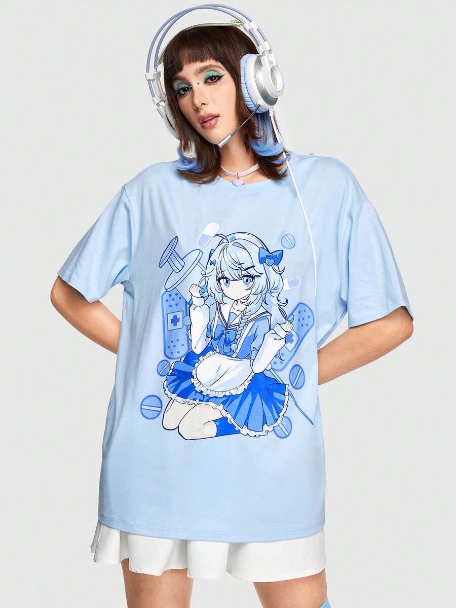 Anime Maglietta a maniche corte con stampa di cartoni animati carini, per la scuola