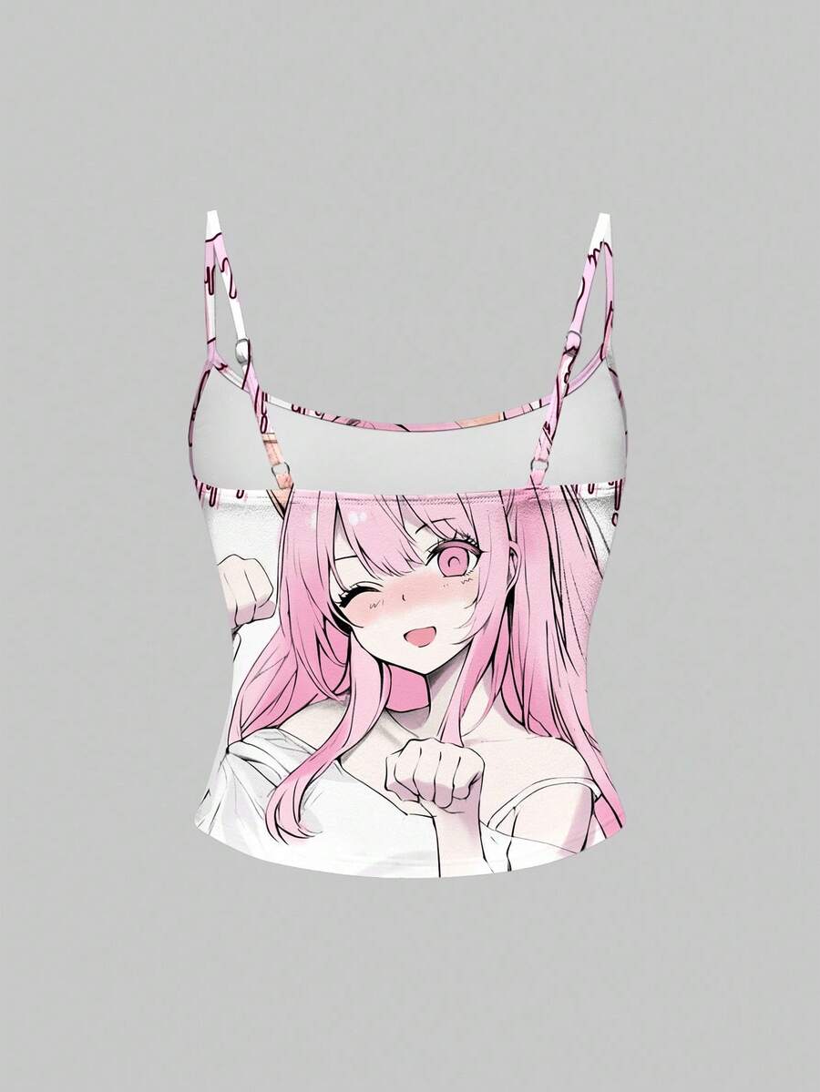 Anime Canotta sexy a forma di cuore in stile Y2K rosa per donne