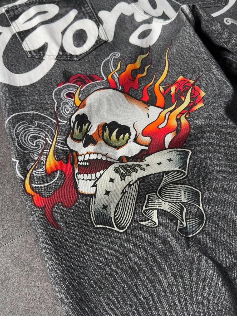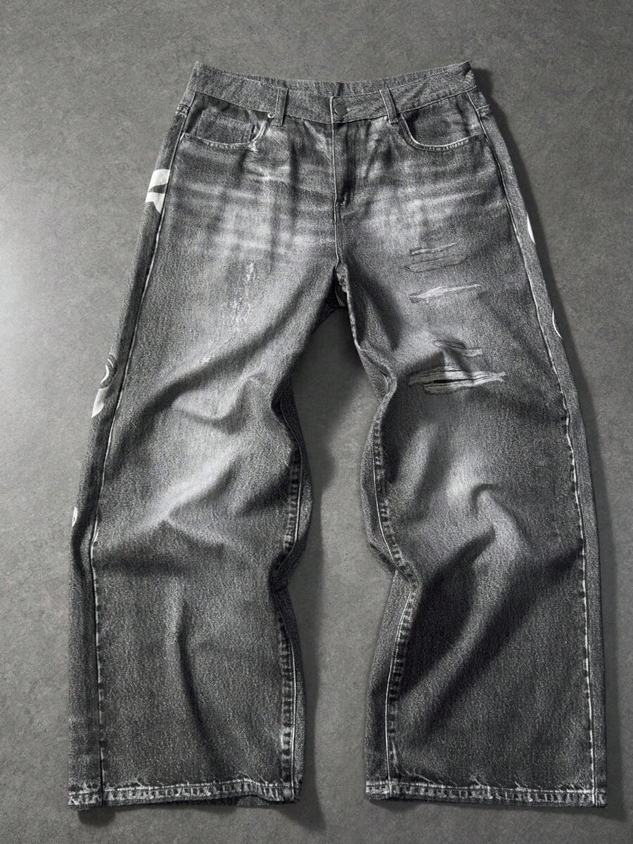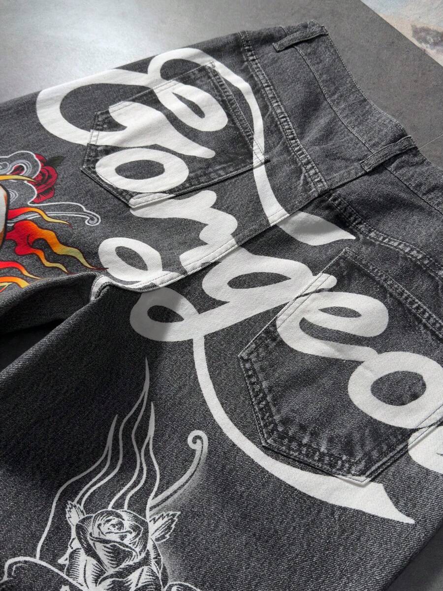 Anime Jeans casual da uomo con stampa di teschi e lettere sulle tasche