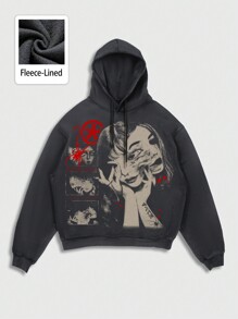 Anime Felpa casual con cappuccio e laccetti, con stampa alla figura, per uomo, adatta per autunno/inverno