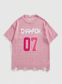 Anime Maglione da uomo a maniche corte lavorato a maglia con dettagli traforati e strappi