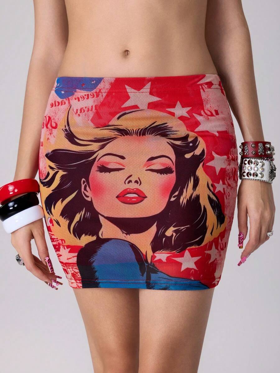 Anime Minigonna retrò con stampa di stelle per il Giorno dell'Indipendenza, per donne