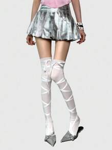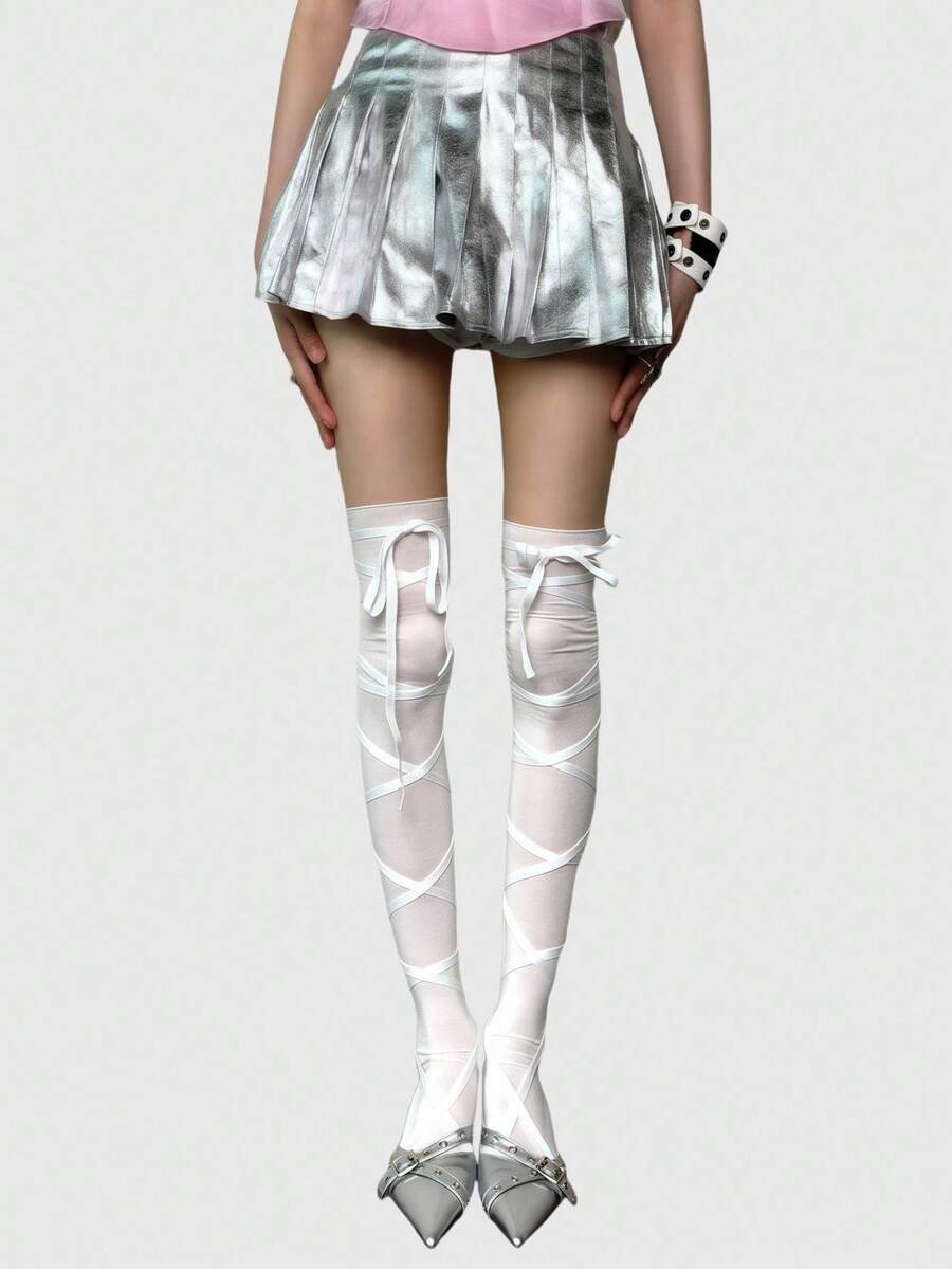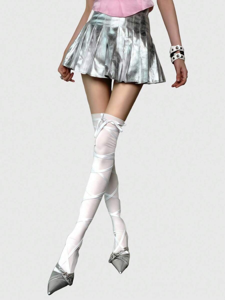 Anime Calze lunghe asimmetriche stile punk Y2K con cinturino a croce, calze sopra il ginocchio di colore solido regolabili per donne