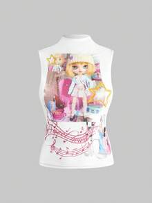 Anime Crop top rosa a cuore stile Y2K surrealista e carino