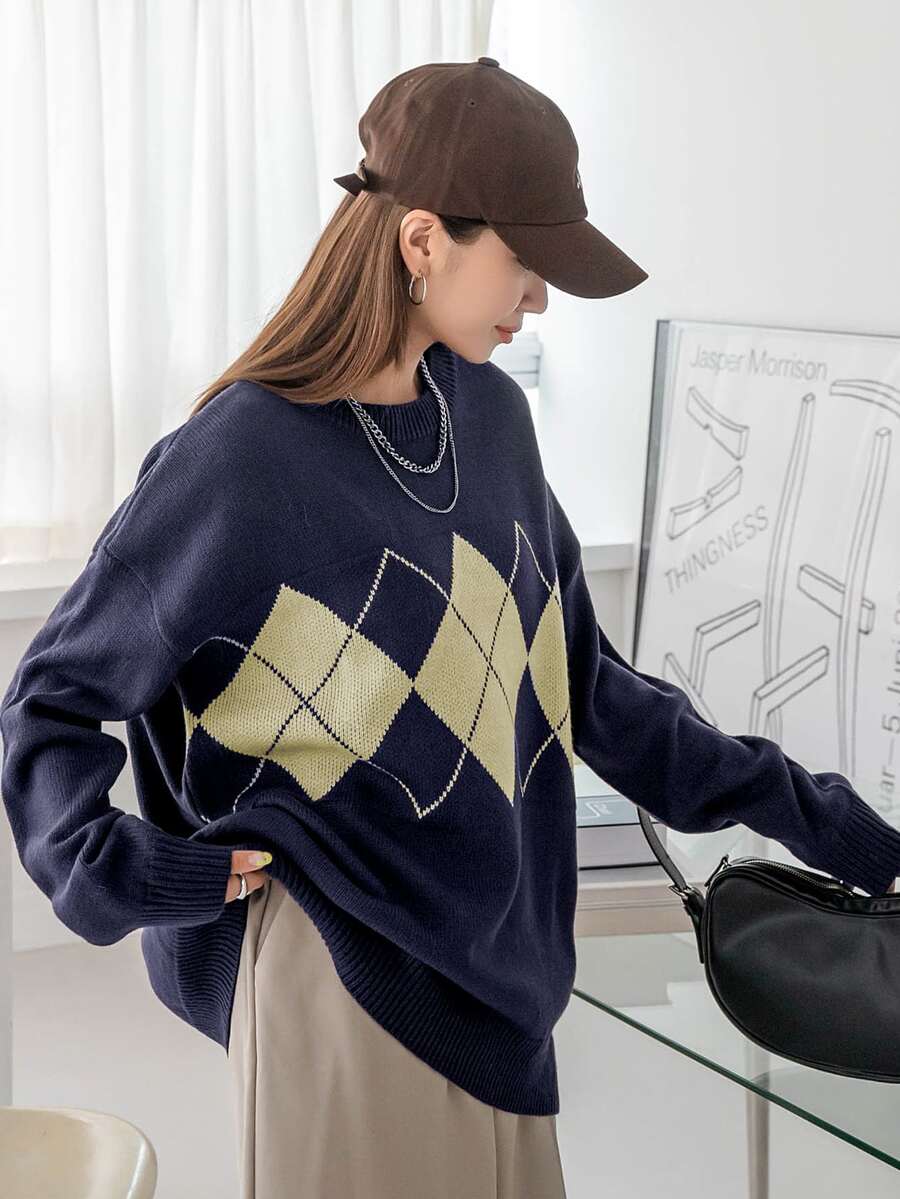 Maglione con modello rombo spalle cadenti