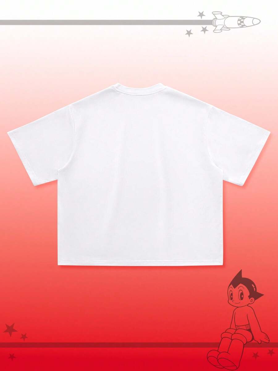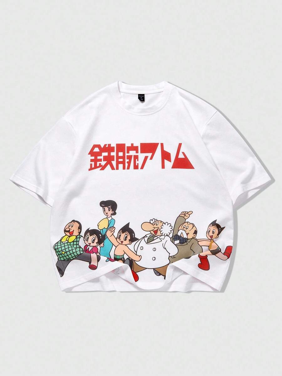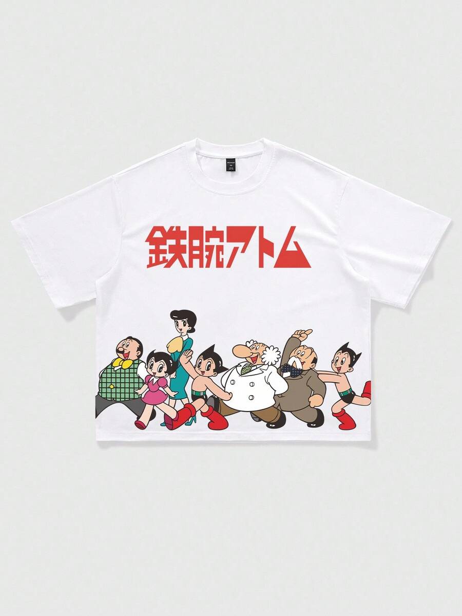 Astro Boy X ROMWE Maglietta a maniche corte da uomo con stampa vintage di cartoni animati e anime, collo tondo