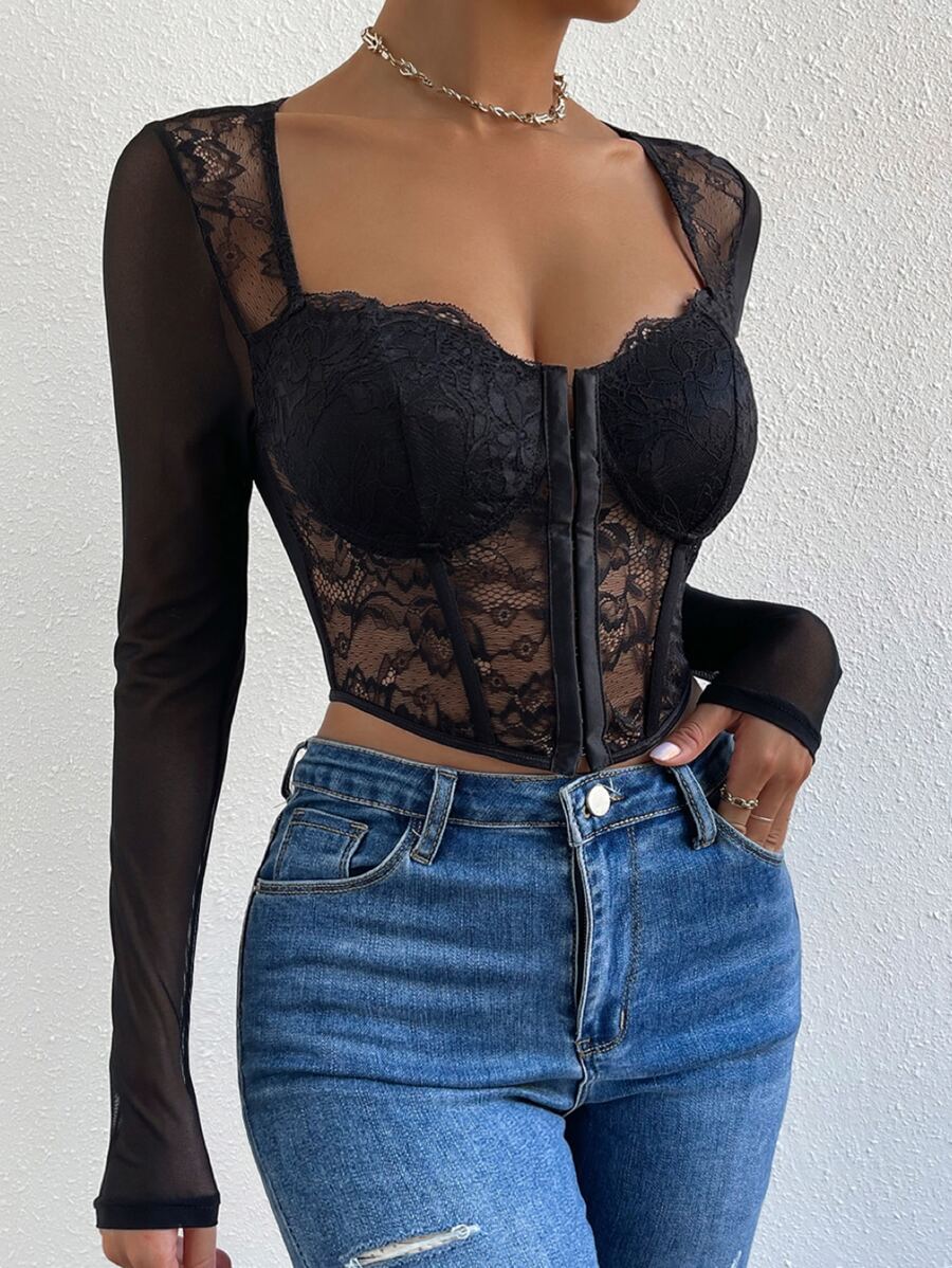 Top orlo asimmetrico corto bustier pizzo