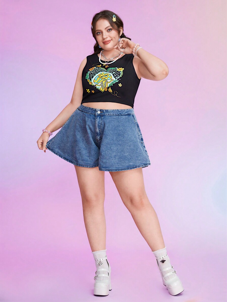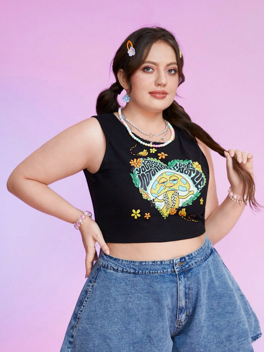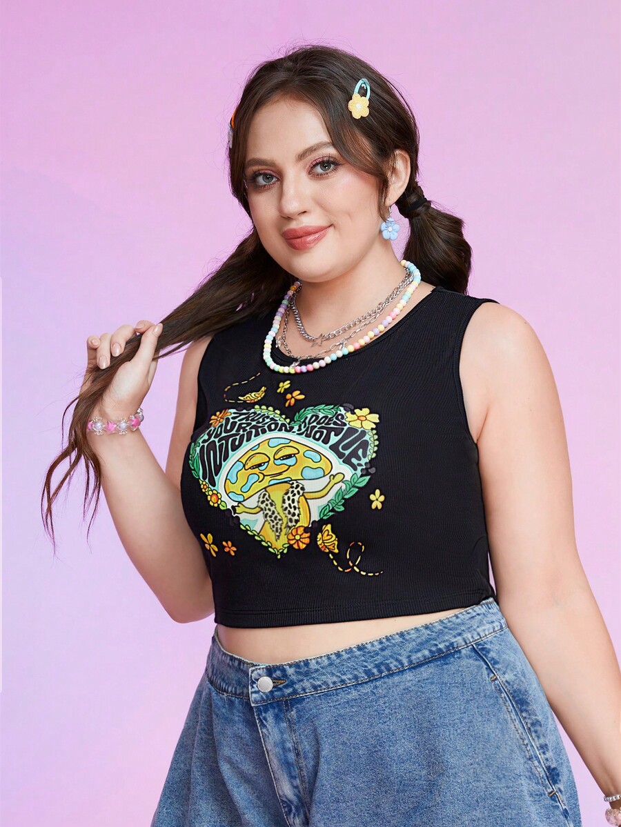 Atosha Taglie Forti Canotta con grafica lettera e cuore