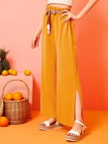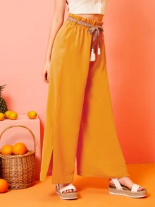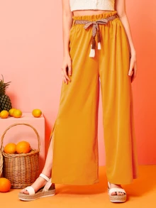 Pantaloni con gamba ampia con cinture e nappa