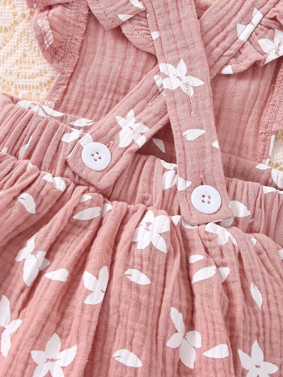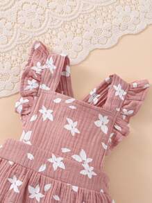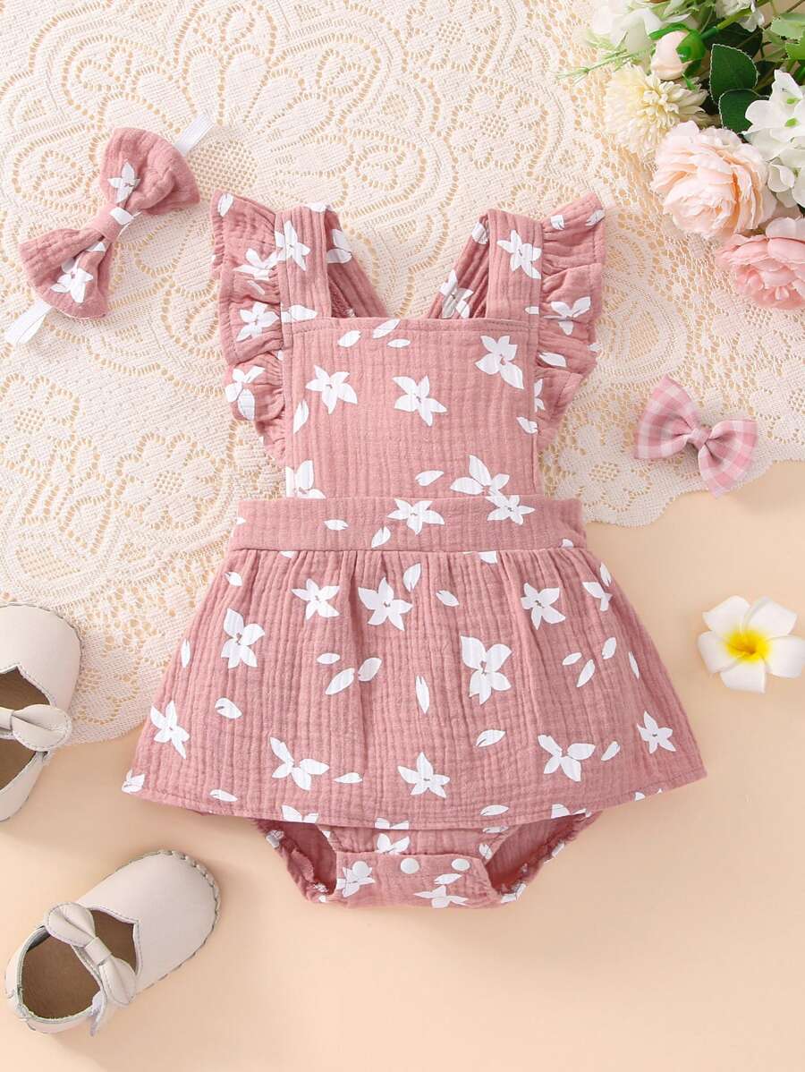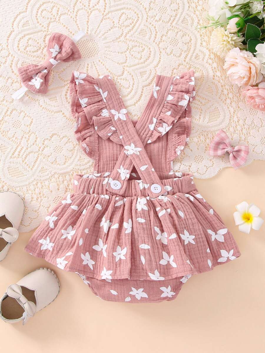 da neonata Abito combo con stampa floreale con bordo a volant & foulard per capelli