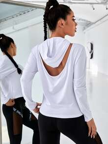 Felpa con cappuccio con schiena scoperta spalle cadenti sportivo