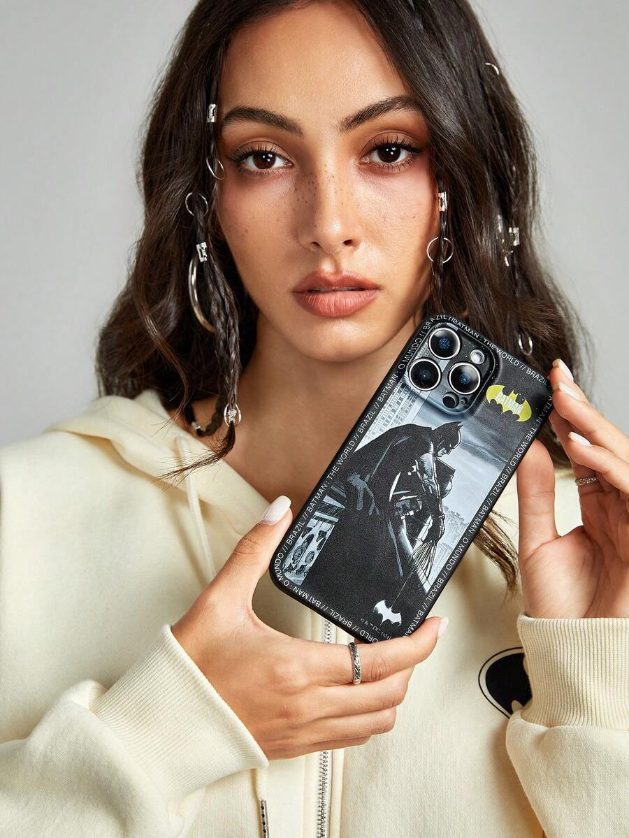 Batman X ROMWE 1 pezzo Custodia per telefono nera compatibile con iPhone 11 12 13 14 15 Pro Max