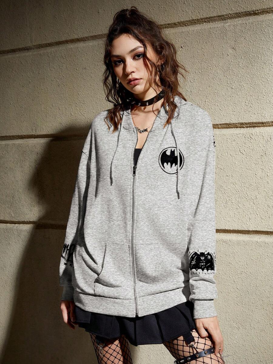 Batman X ROMWE Felpa Con Maniche Lunghe Aperte All'avanti, Con Tasche