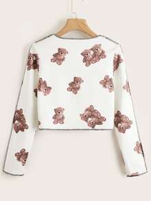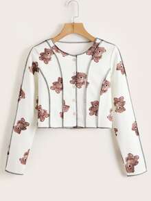 Maglietta con stampa orso di fumetto cucitura abbottonato