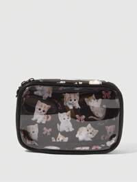 Kawaii Custodia organizzativa trasparente con stampa di gatti e fiocchi, borsa quadrata per riporre gli oggetti