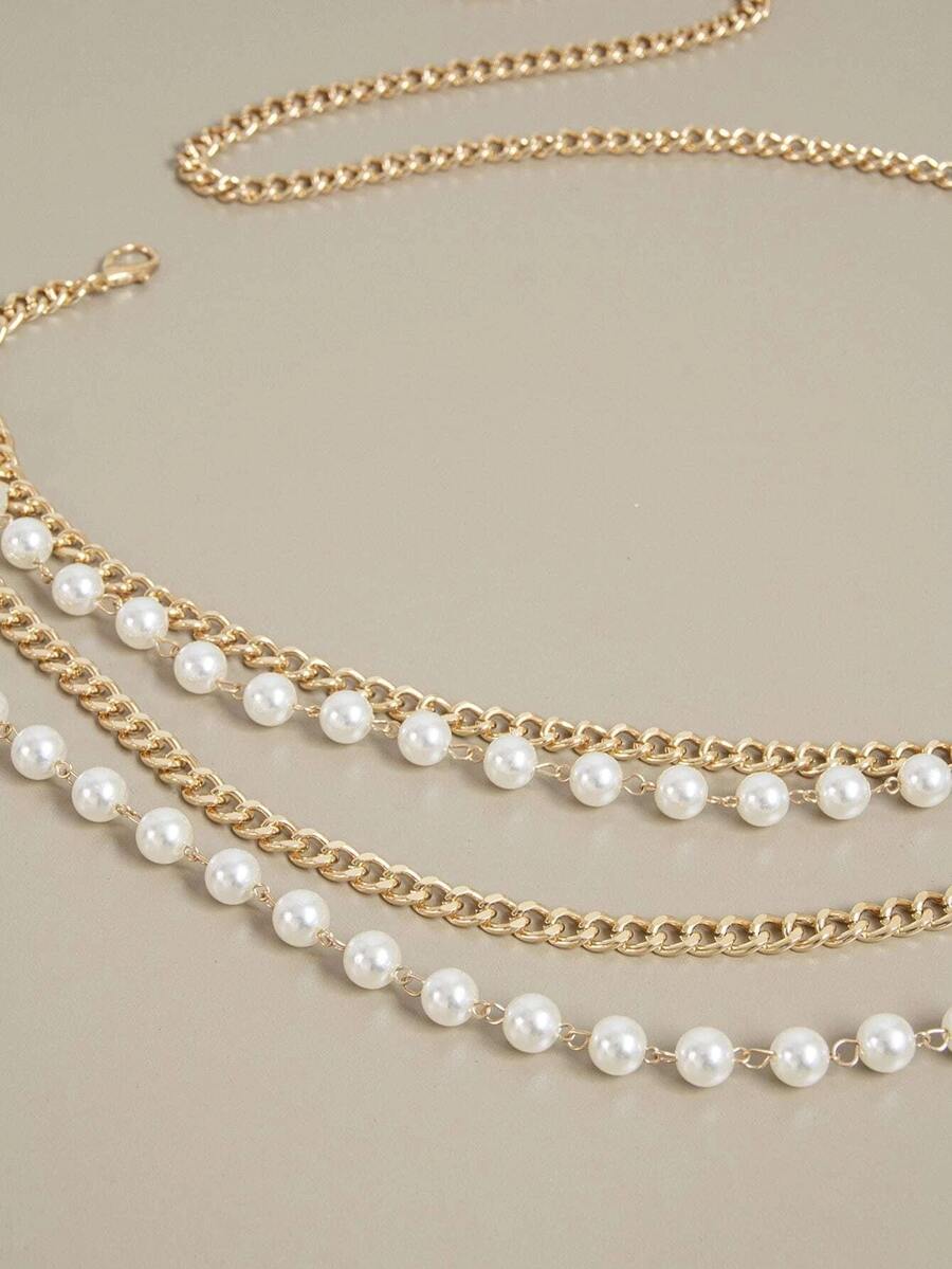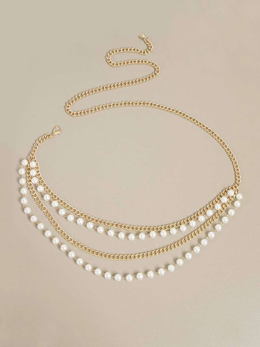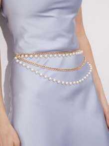 Donna 1 pezzo decorazione di perle finte elegante con catena per decorazione del vestito