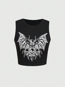 Berkahserawung Maglietta Senza Maniche Con Stampa Teschio Da Donna, Nera
