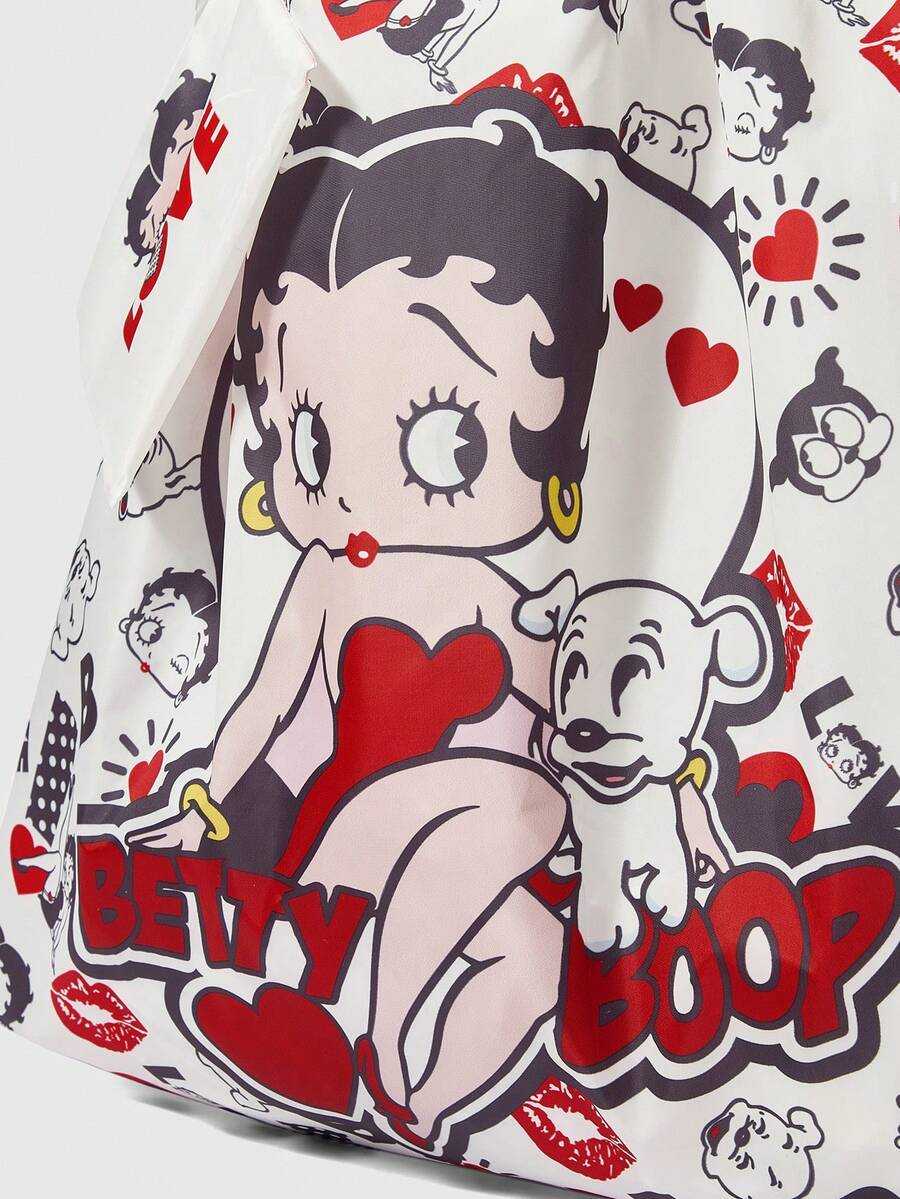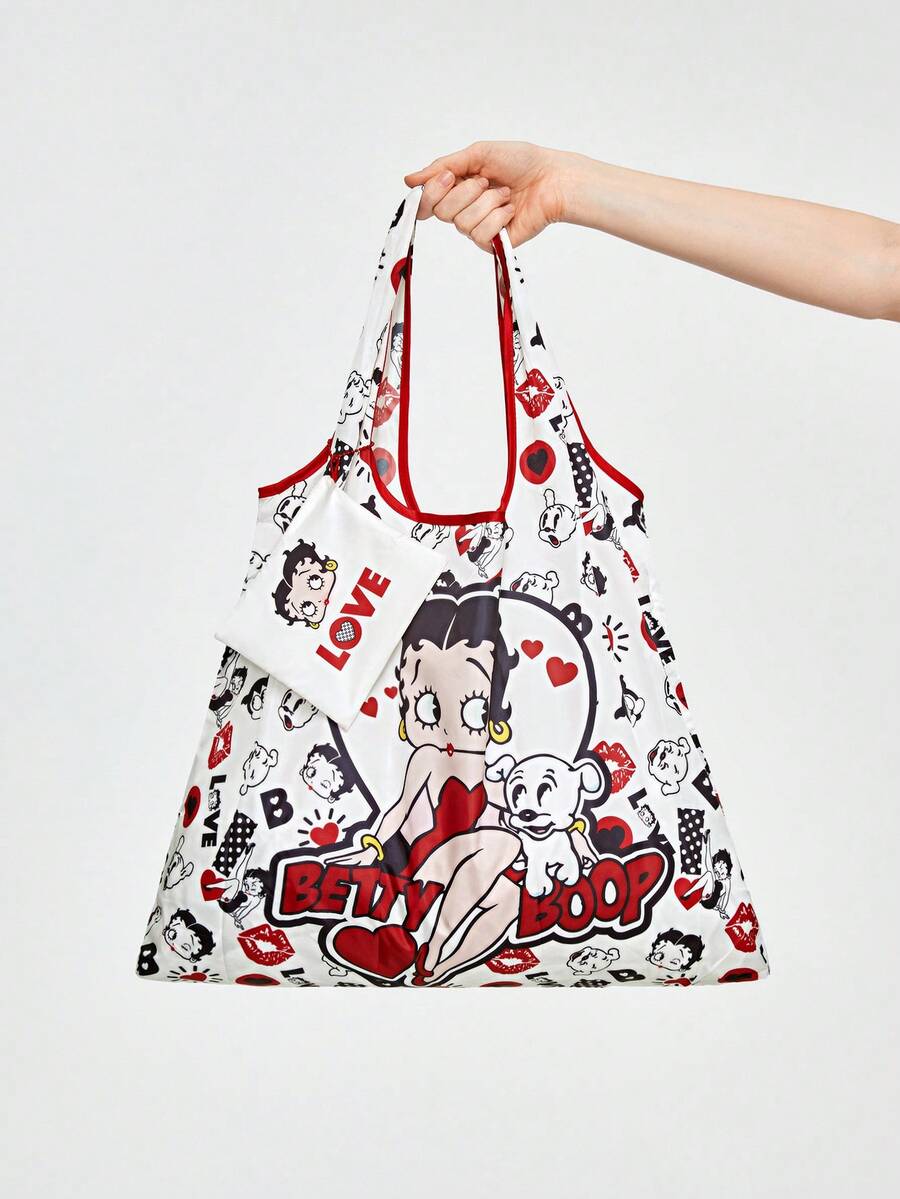 Betty Boop | ROMWE Borsa di stoccaggio dolce e adorabile stampata con personaggi dei cartoni animati, grande capacità, borsa tote pieghevole per la spesa con portamonete