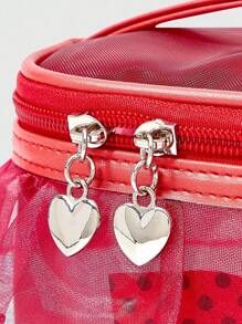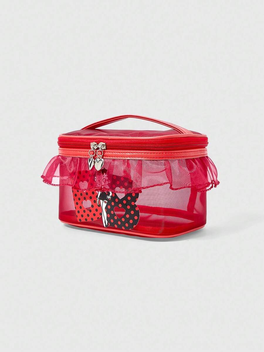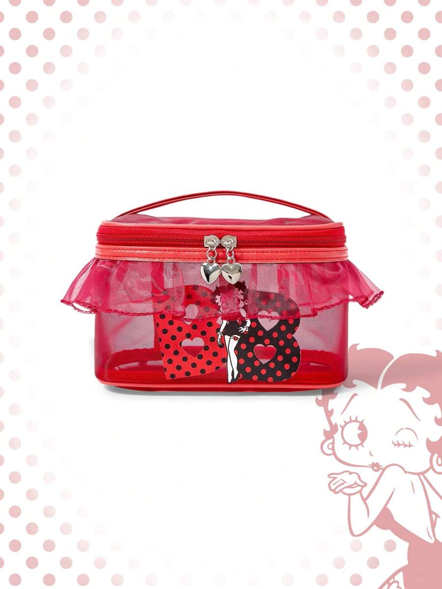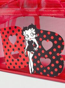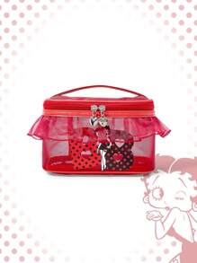 Betty Boop | ROMWE Borsetta cosmetica portatile con figura e motivo a pois alla moda, realizzata in pizzo e rete