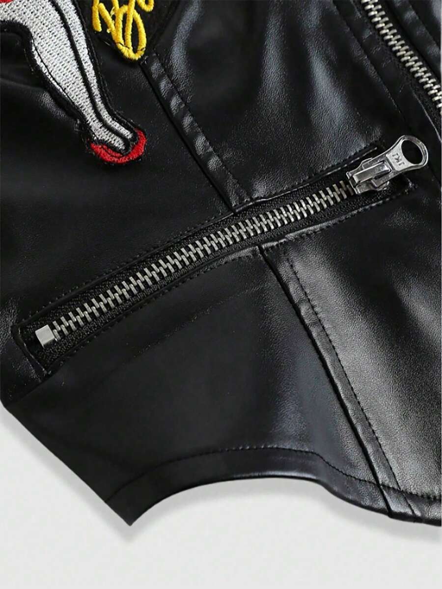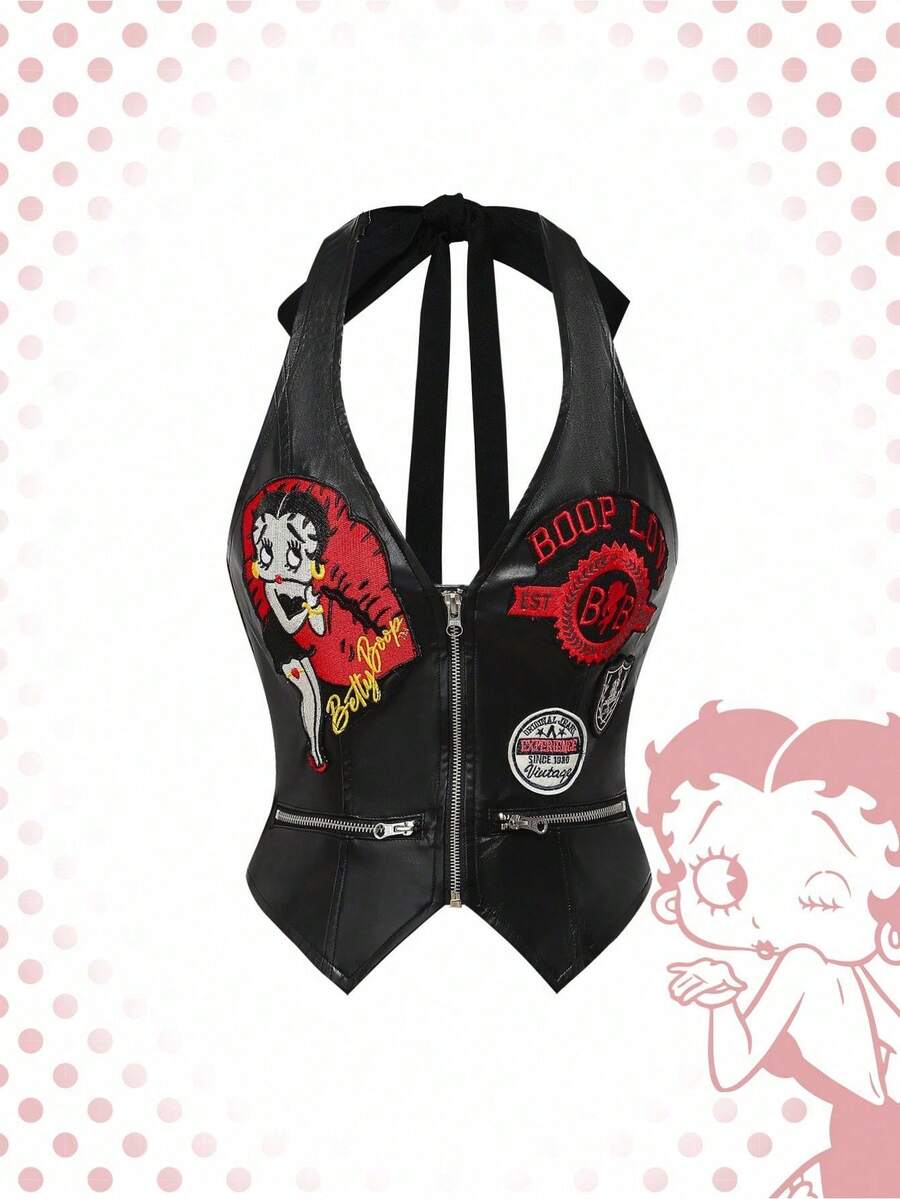 Betty Boop | ROMWE Top canotta da donna con grafica a figura di cartone animato stile Kpop, ricamo, cerniera, collo alto, in tessuto PU