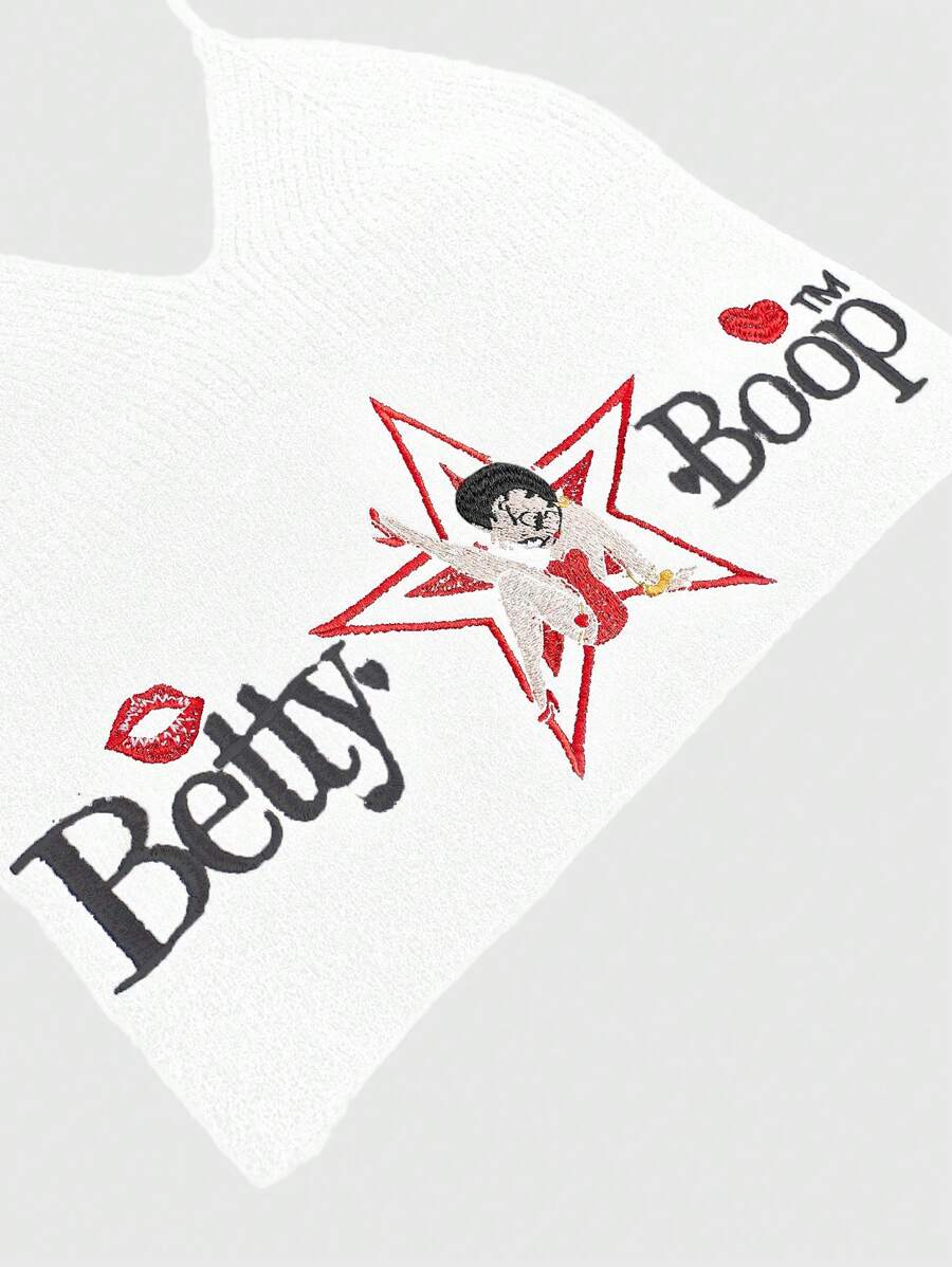 Betty Boop | ROMWE Top a maglia con cinturino halter ricamo di lettere e figure per donne