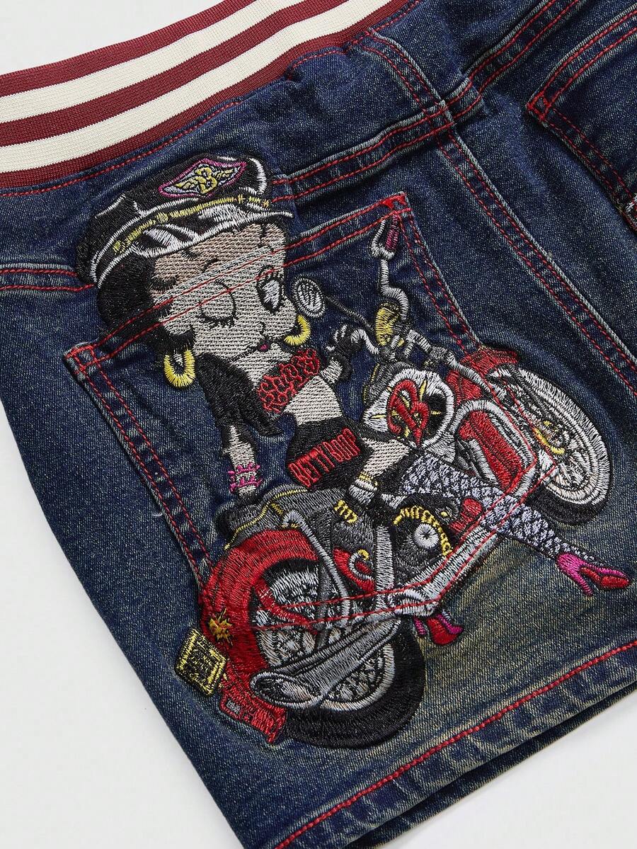 Betty Boop | ROMWE Minigonna di jeans con vita a costine, stampa leopardata, ricamo di personaggi dei cartoni animati, stile Y2K biker chic, dolce e cool