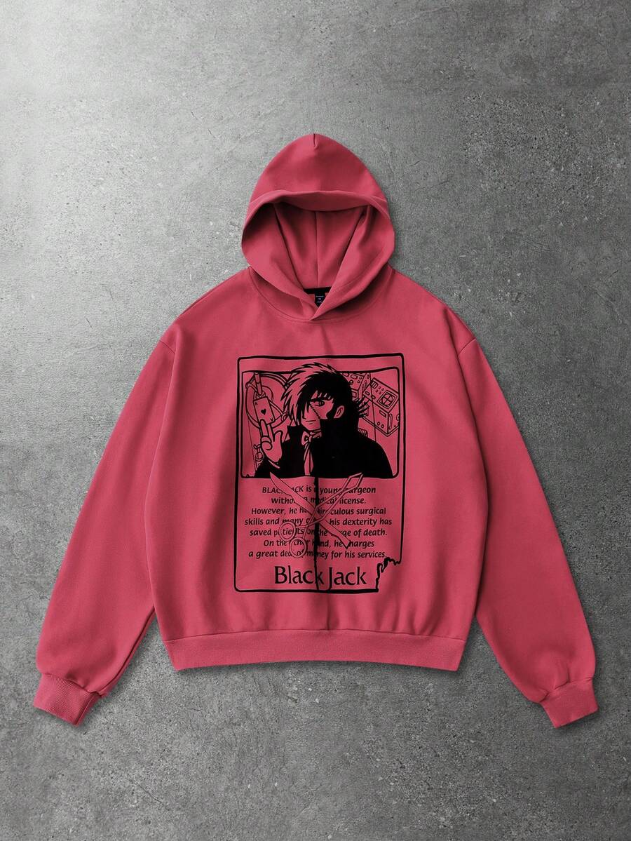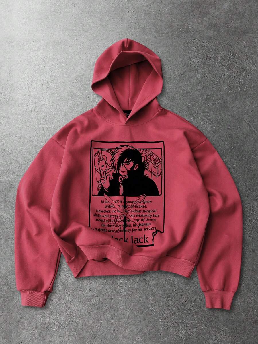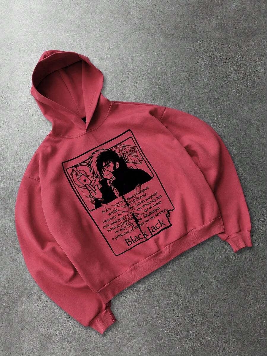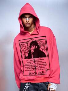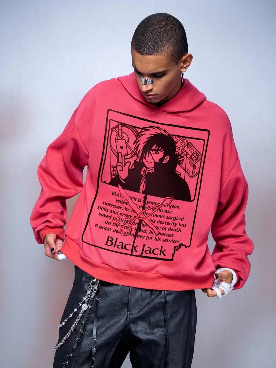 Black Jack X ROMWE Felpa con cappuccio da uomo con stampa grafica a cartone animato, adatta per l'autunno/inverno